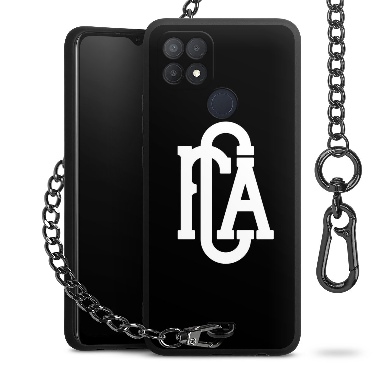 • Mattschwarze Handyhülle mit Metallkette