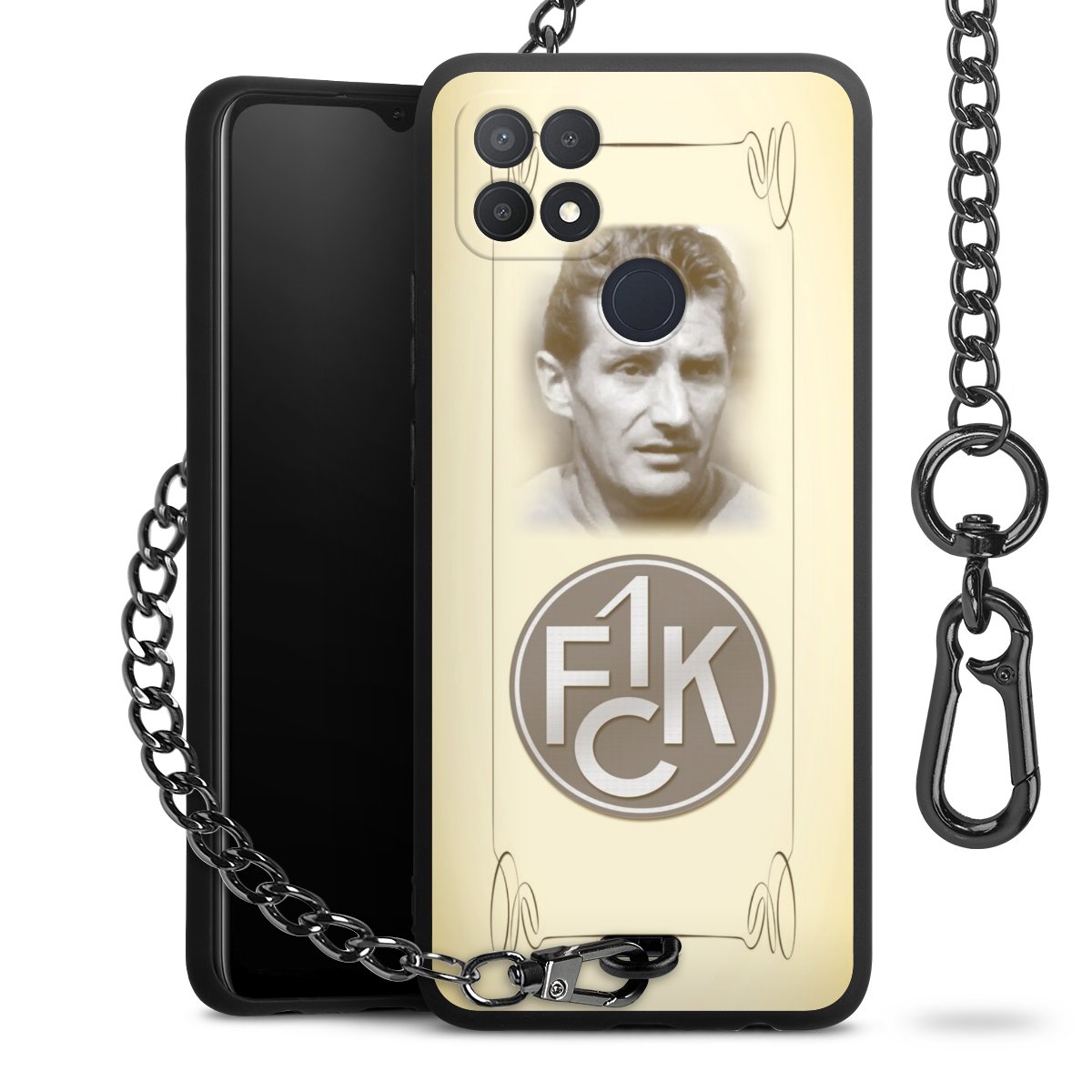 Die Handyhülle verfügt über eine mittig am unteren Rand platzierte Öse, an der die Metallkette stabil befestigt ist. Bestelle die Hülle einfach für Dein Smartphone-Modell, dann passt sie wie angegossen und Du brauchst sie bloß einmal anzudrücken. Handy in die Tasche, Karabiner an den Hosenbund – schon kann die Party starten.