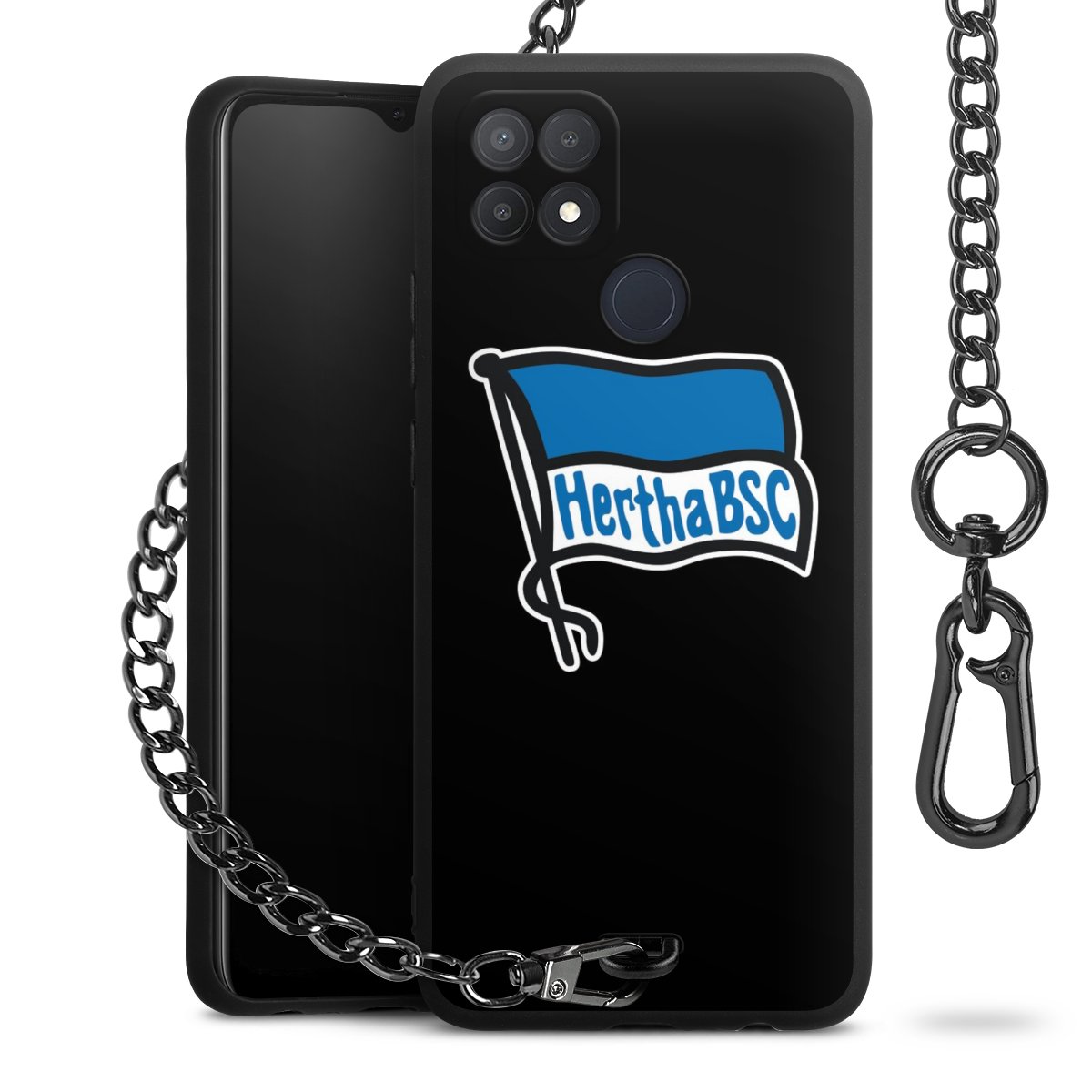 Die mattschwarze Silikon-Handyhülle besteht aus robustem TPU (thermoplastisches Polyurethan). Sie ist flexibel und schützt Dein Smartphone vor Stößen und Kratzern. Die Kette sowie der Karabinerhaken sind aus Metall in Gunmetal-Optik gefertigt. Für dieses Produkt kommen ausschließlich TÜV-geprüfte Materialien zum Einsatz.