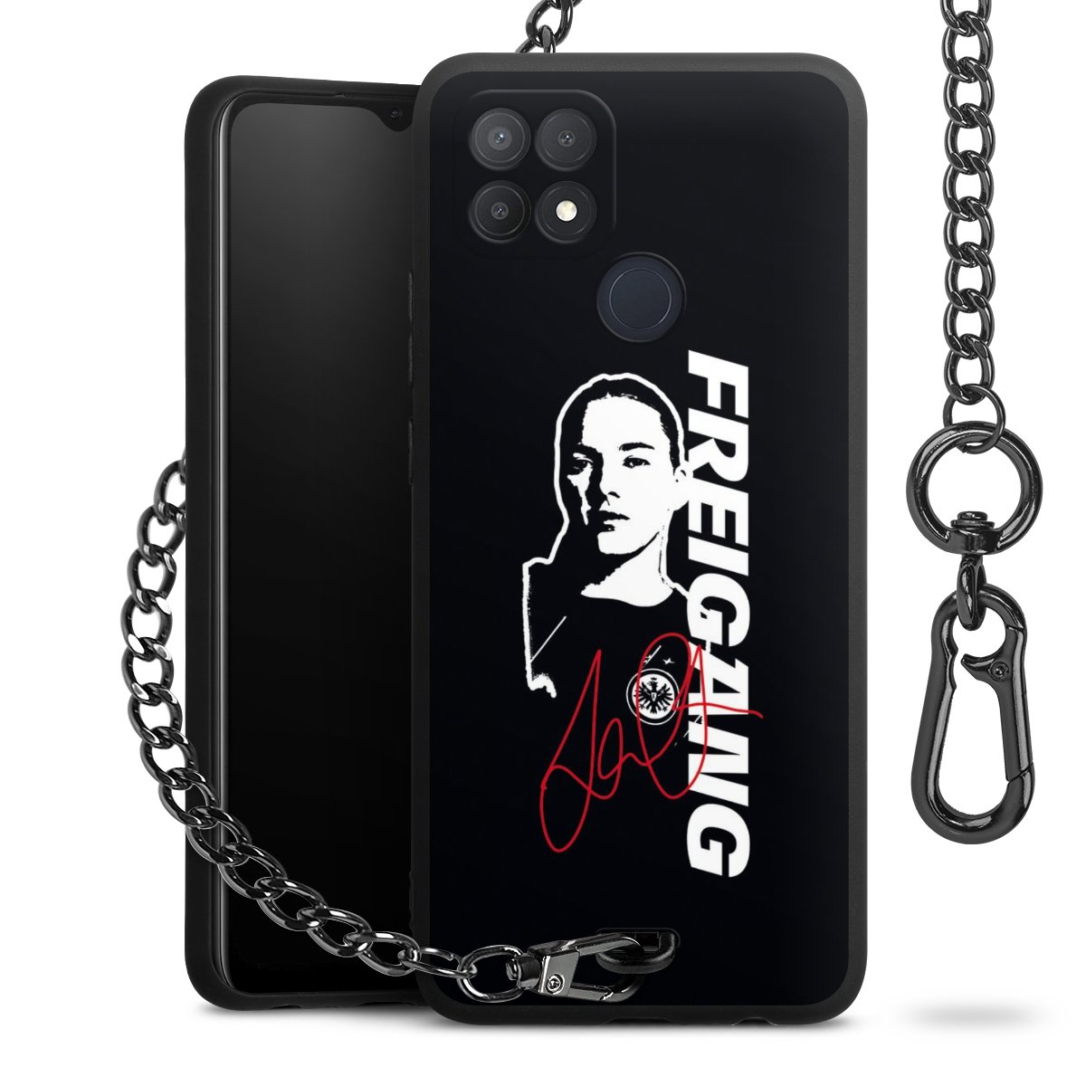 • Mattschwarze Handyhülle mit Metallkette