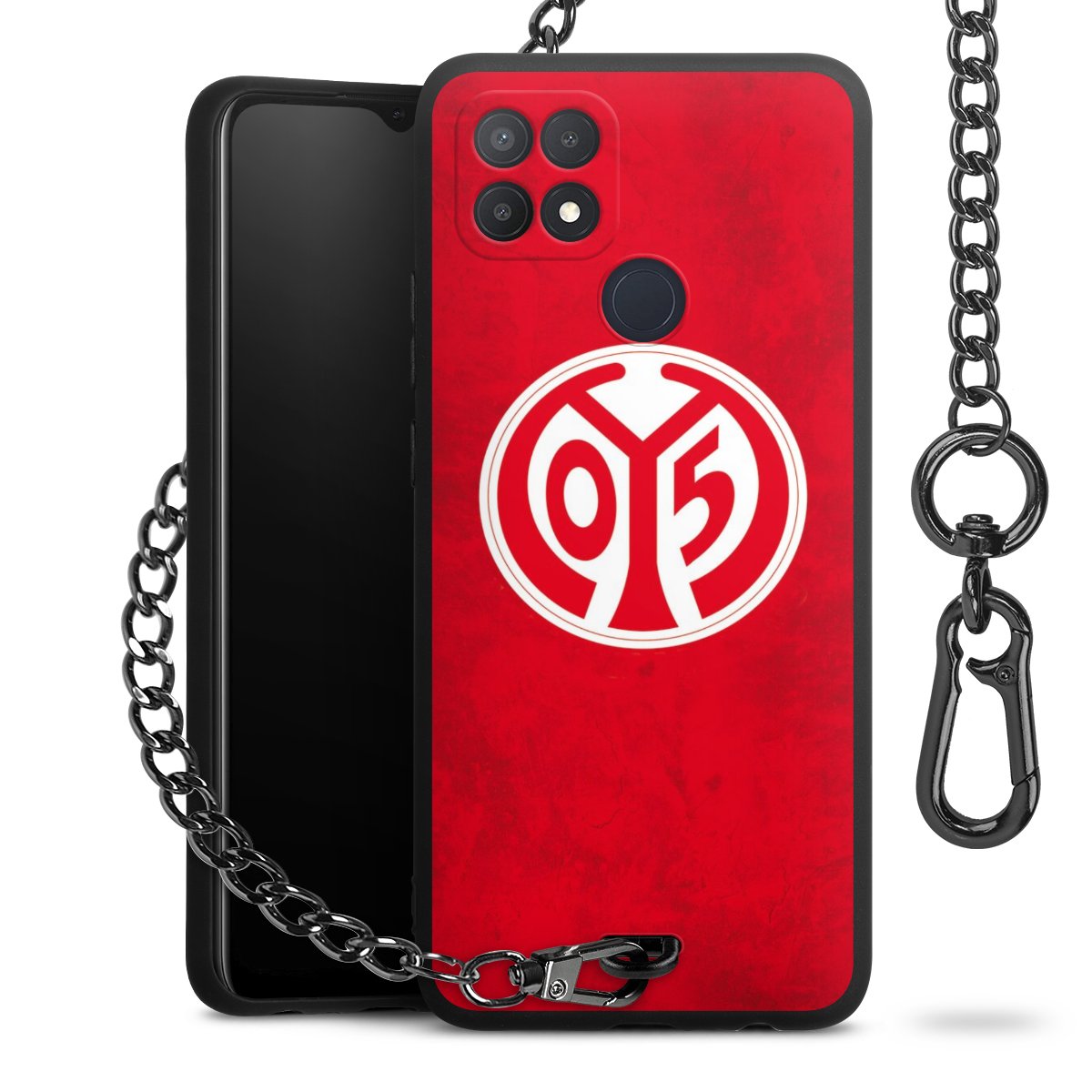 Die Handyhülle verfügt über eine mittig am unteren Rand platzierte Öse, an der die Metallkette stabil befestigt ist. Bestelle die Hülle einfach für Dein Smartphone-Modell, dann passt sie wie angegossen und Du brauchst sie bloß einmal anzudrücken. Handy in die Tasche, Karabiner an den Hosenbund – schon kann die Party starten.