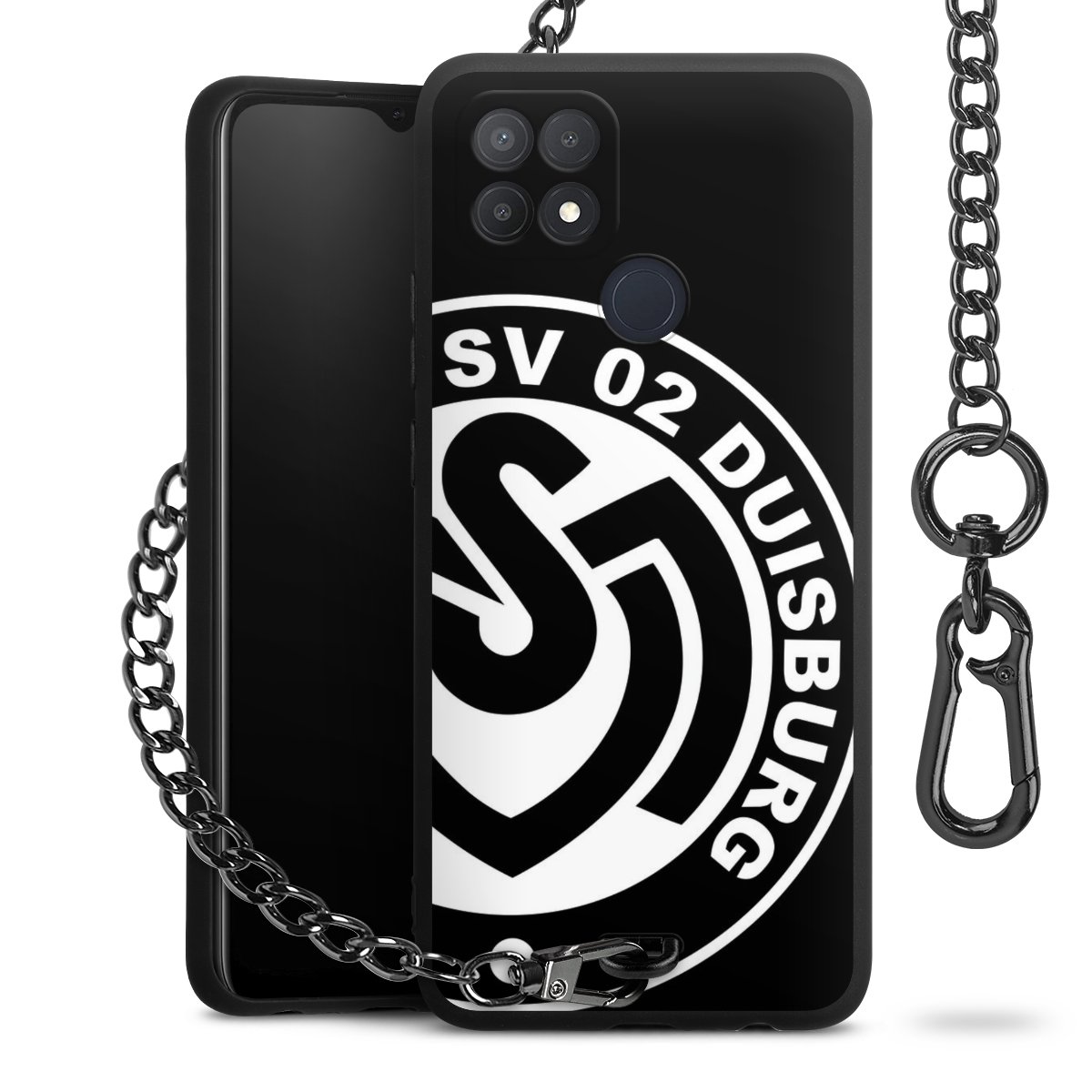 Die mattschwarze Silikon-Handyhülle besteht aus robustem TPU (thermoplastisches Polyurethan). Sie ist flexibel und schützt Dein Smartphone vor Stößen und Kratzern. Die Kette sowie der Karabinerhaken sind aus Metall in Gunmetal-Optik gefertigt. Für dieses Produkt kommen ausschließlich TÜV-geprüfte Materialien zum Einsatz.