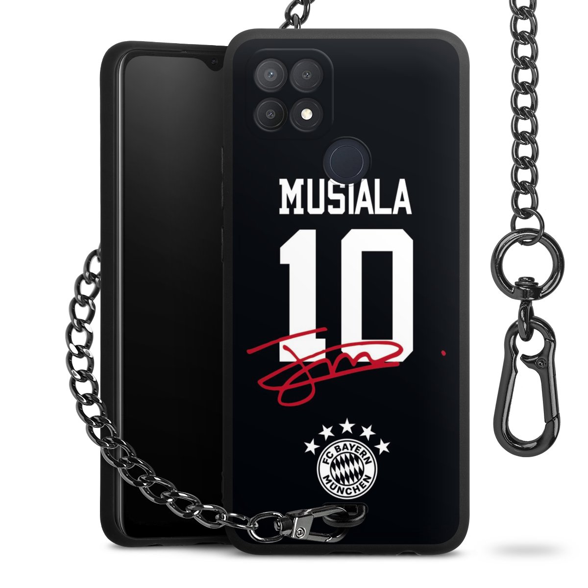 • Mattschwarze Handyhülle mit Metallkette