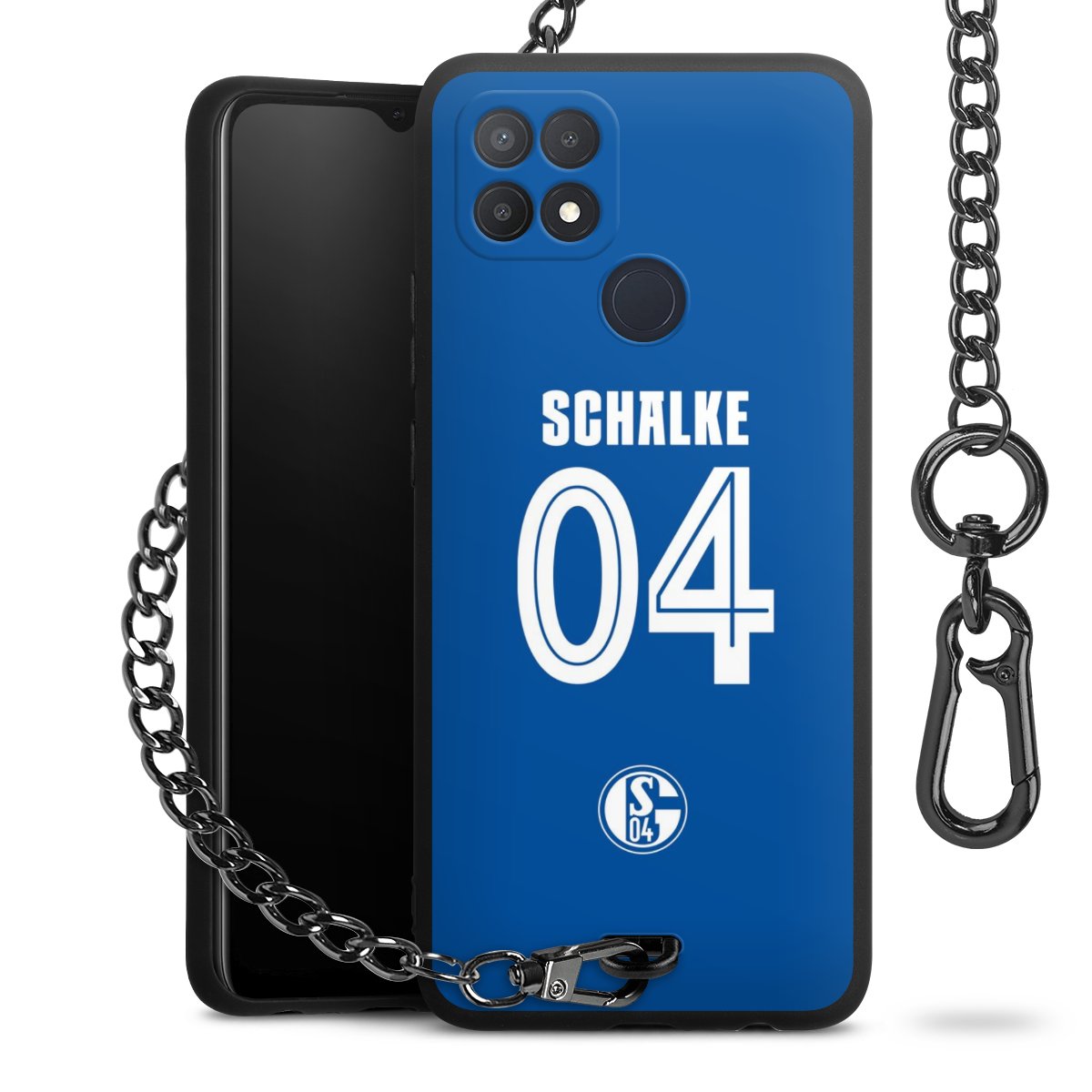 Die Handyhülle verfügt über eine mittig am unteren Rand platzierte Öse, an der die Metallkette stabil befestigt ist. Bestelle die Hülle einfach für Dein Smartphone-Modell, dann passt sie wie angegossen und Du brauchst sie bloß einmal anzudrücken. Handy in die Tasche, Karabiner an den Hosenbund – schon kann die Party starten.