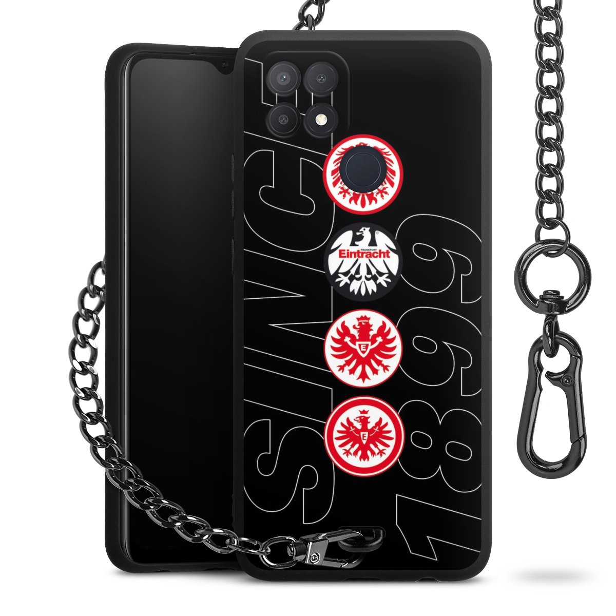 Die mattschwarze Silikon-Handyhülle besteht aus robustem TPU (thermoplastisches Polyurethan). Sie ist flexibel und schützt Dein Smartphone vor Stößen und Kratzern. Die Kette sowie der Karabinerhaken sind aus Metall in Gunmetal-Optik gefertigt. Für dieses Produkt kommen ausschließlich TÜV-geprüfte Materialien zum Einsatz.