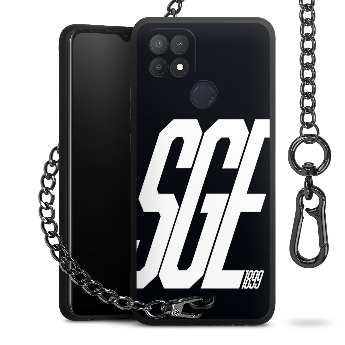 • Mattschwarze Handyhülle mit Metallkette