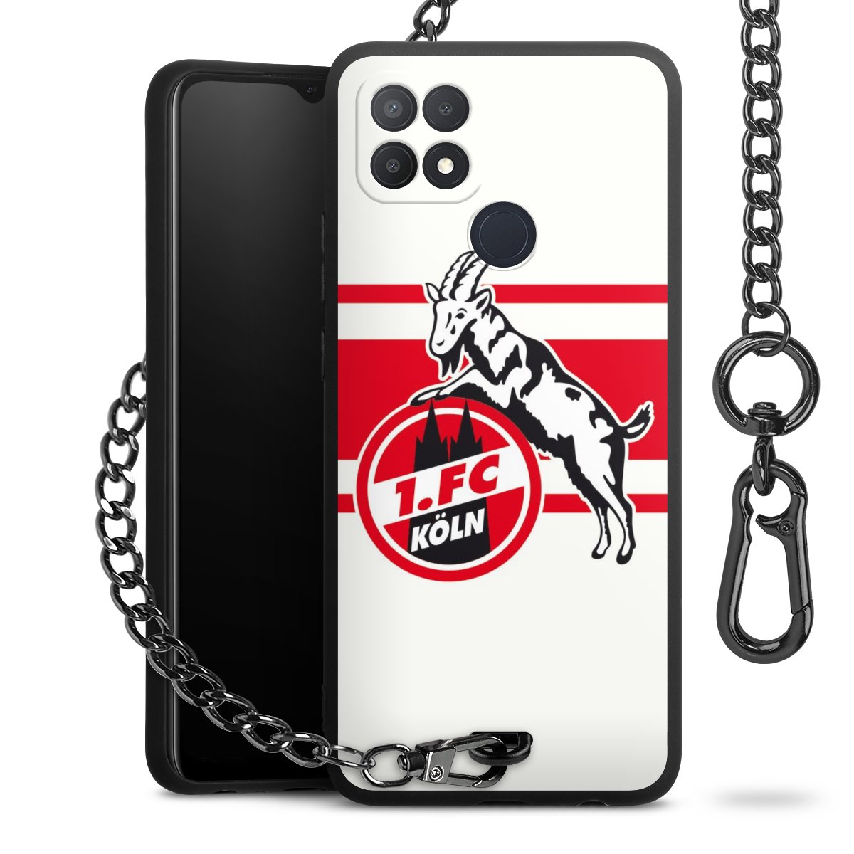 Die Handyhülle verfügt über eine mittig am unteren Rand platzierte Öse, an der die Metallkette stabil befestigt ist. Bestelle die Hülle einfach für Dein Smartphone-Modell, dann passt sie wie angegossen und Du brauchst sie bloß einmal anzudrücken. Handy in die Tasche, Karabiner an den Hosenbund – schon kann die Party starten.