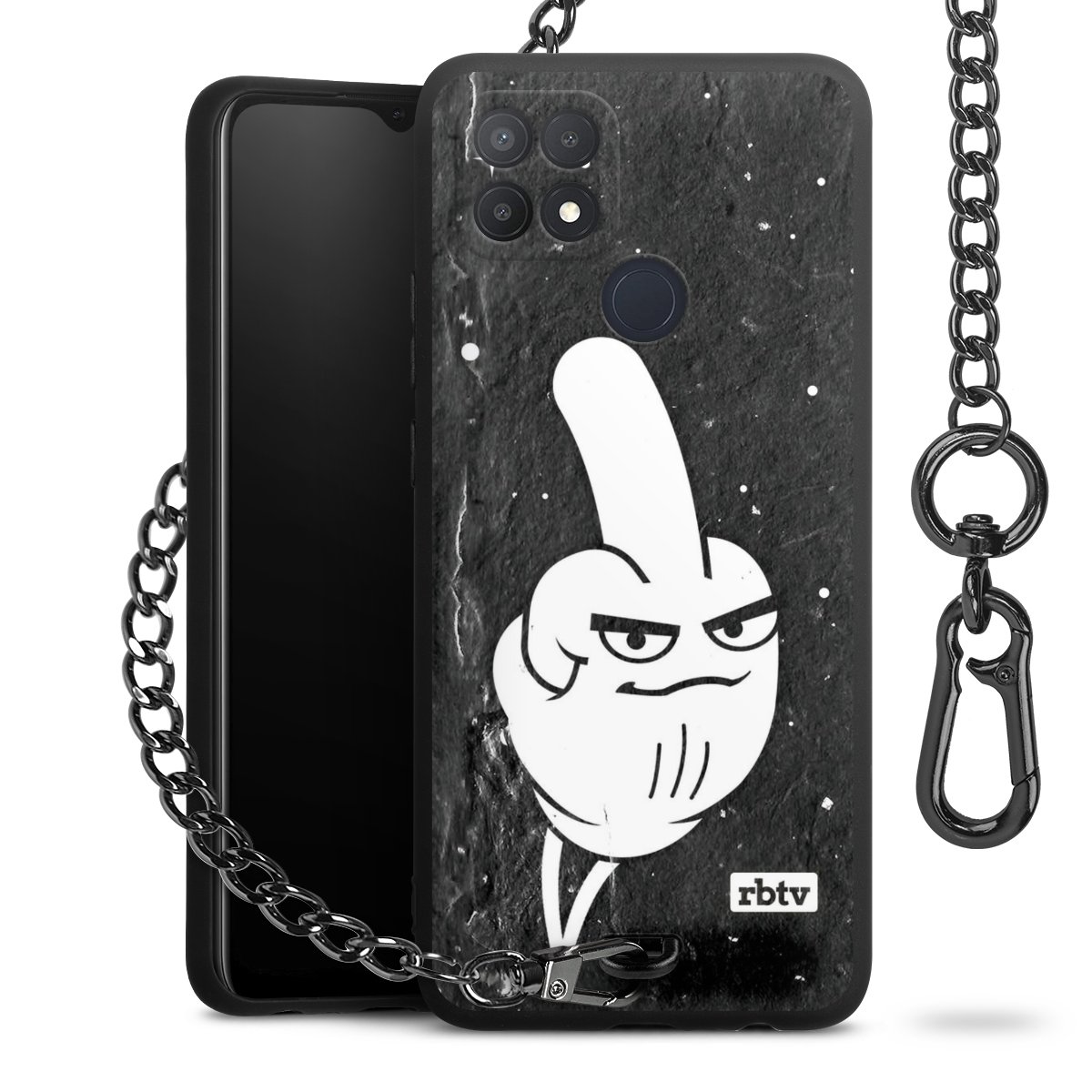 Die mattschwarze Silikon-Handyhülle besteht aus robustem TPU (thermoplastisches Polyurethan). Sie ist flexibel und schützt Dein Smartphone vor Stößen und Kratzern. Die Kette sowie der Karabinerhaken sind aus Metall in Gunmetal-Optik gefertigt. Für dieses Produkt kommen ausschließlich TÜV-geprüfte Materialien zum Einsatz.