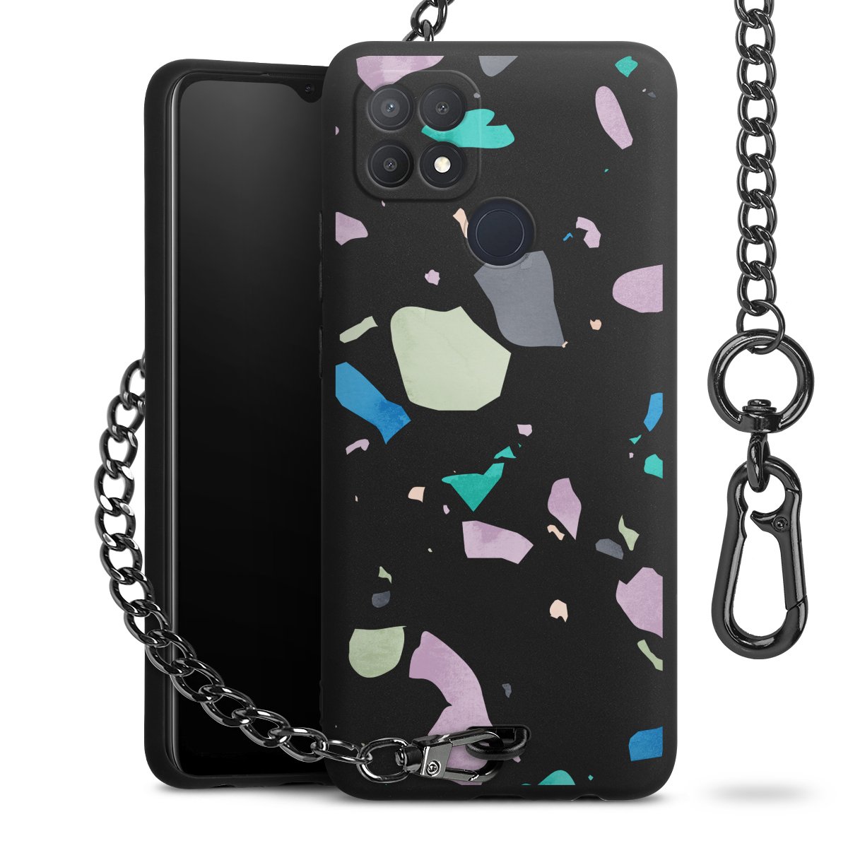 • Mattschwarze Handyhülle mit Metallkette