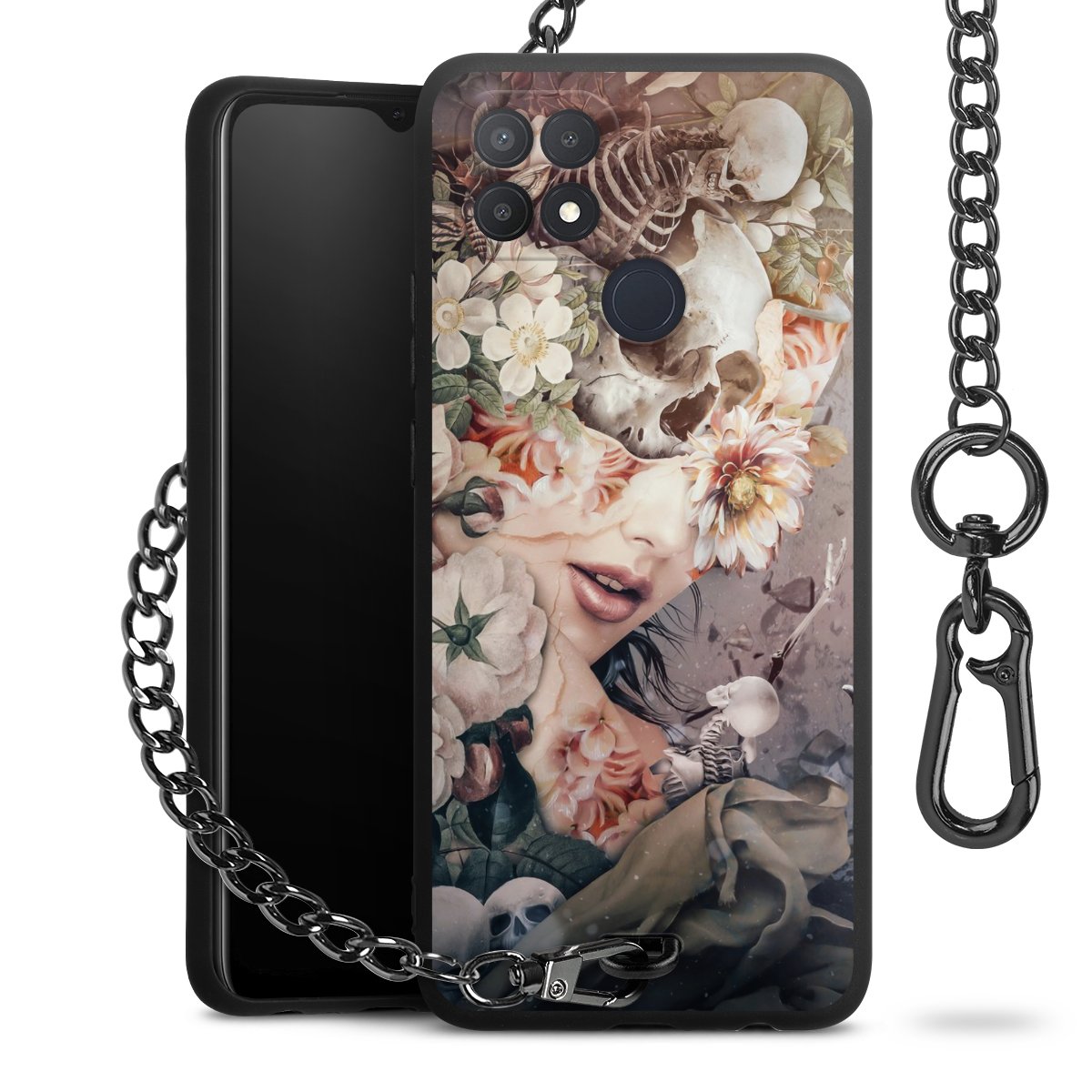 Die mattschwarze Silikon-Handyhülle besteht aus robustem TPU (thermoplastisches Polyurethan). Sie ist flexibel und schützt Dein Smartphone vor Stößen und Kratzern. Die Kette sowie der Karabinerhaken sind aus Metall in Gunmetal-Optik gefertigt. Für dieses Produkt kommen ausschließlich TÜV-geprüfte Materialien zum Einsatz.
