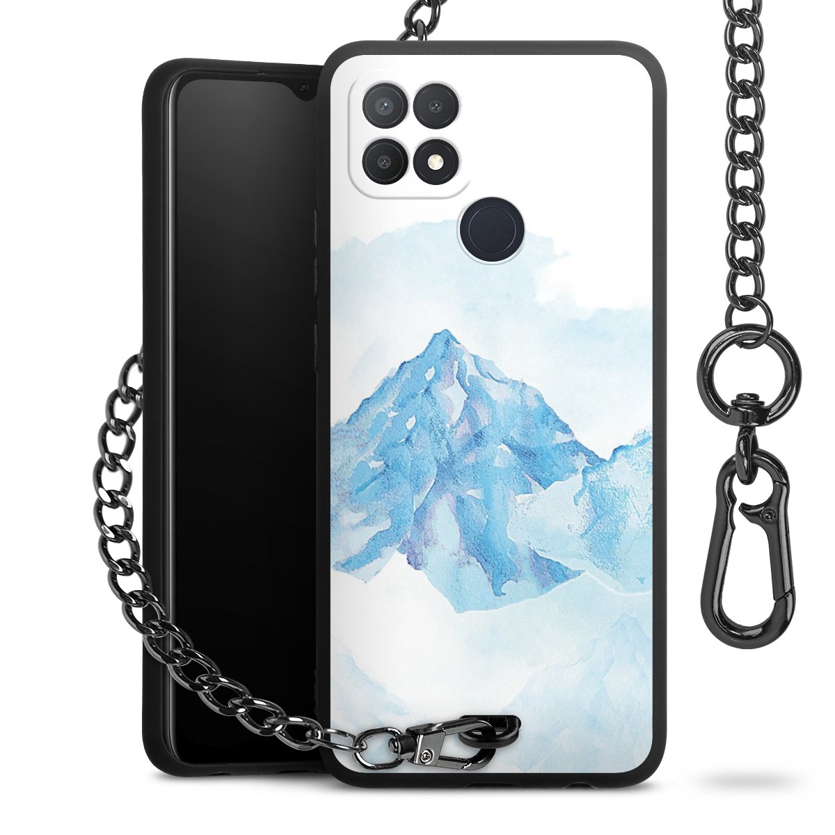 - Mattschwarze Handyhülle mit Metallkette