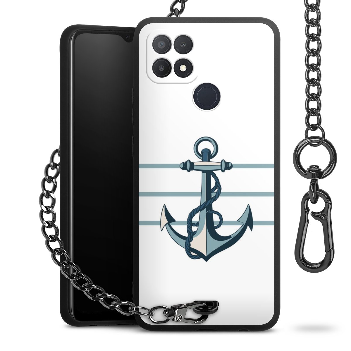 Die mattschwarze Silikon-Handyhülle besteht aus robustem TPU (thermoplastisches Polyurethan). Sie ist flexibel und schützt Dein Smartphone vor Stößen und Kratzern. Die Kette sowie der Karabinerhaken sind aus Metall in Gunmetal-Optik gefertigt. Für dieses Produkt kommen ausschließlich TÜV-geprüfte Materialien zum Einsatz.
