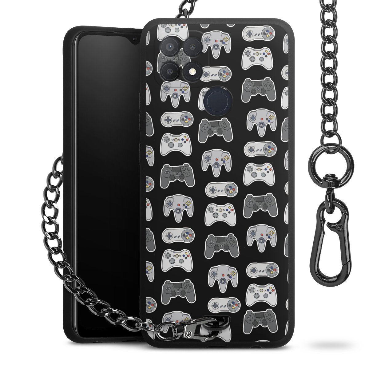 • Mattschwarze Handyhülle mit Metallkette