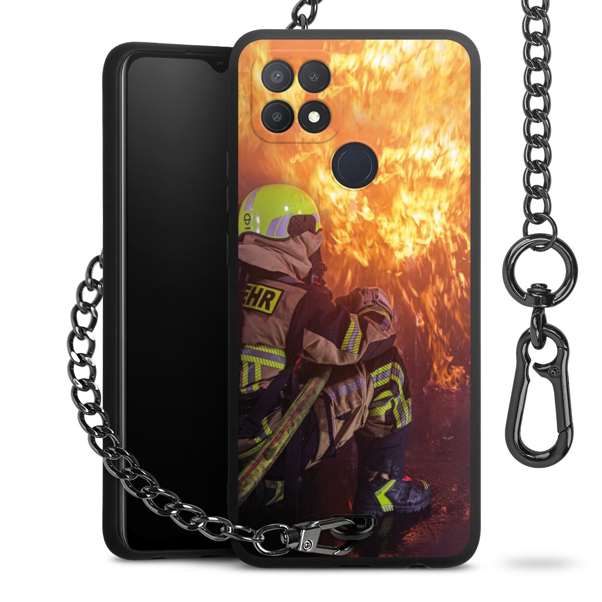 • Mattschwarze Handyhülle mit Metallkette