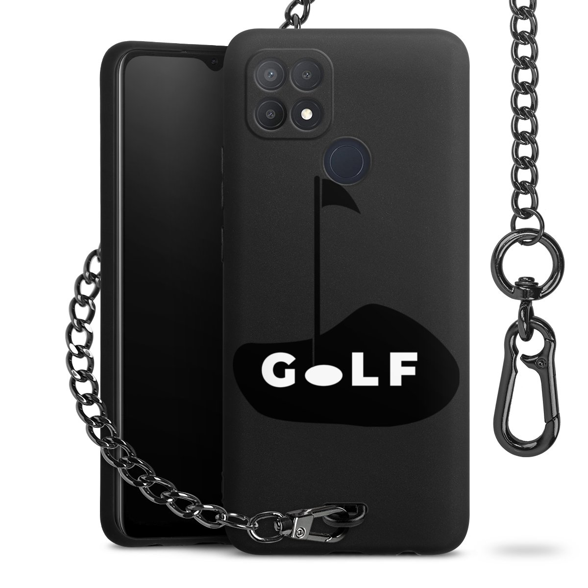 • Mattschwarze Handyhülle mit Metallkette