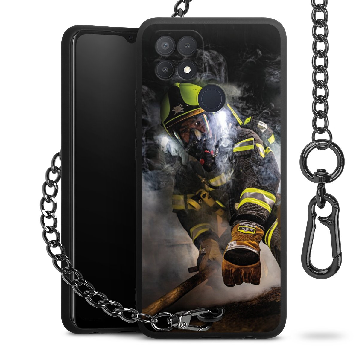 Die mattschwarze Silikon-Handyhülle besteht aus robustem TPU (thermoplastisches Polyurethan). Sie ist flexibel und schützt Dein Smartphone vor Stößen und Kratzern. Die Kette sowie der Karabinerhaken sind aus Metall in Gunmetal-Optik gefertigt. Für dieses Produkt kommen ausschließlich TÜV-geprüfte Materialien zum Einsatz.