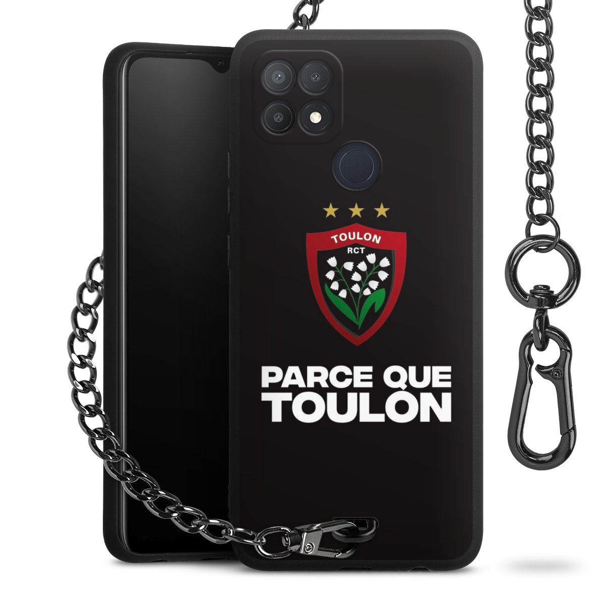• Mattschwarze Handyhülle mit Metallkette