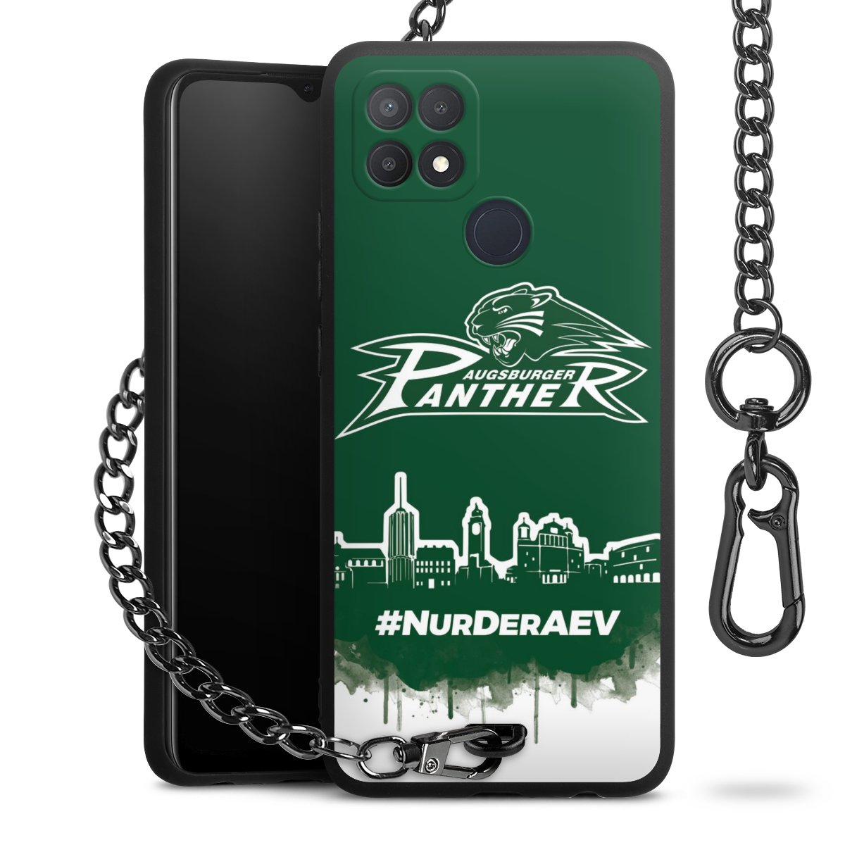 Die mattschwarze Silikon-Handyhülle besteht aus robustem TPU (thermoplastisches Polyurethan). Sie ist flexibel und schützt Dein Smartphone vor Stößen und Kratzern. Die Kette sowie der Karabinerhaken sind aus Metall in Gunmetal-Optik gefertigt. Für dieses Produkt kommen ausschließlich TÜV-geprüfte Materialien zum Einsatz.