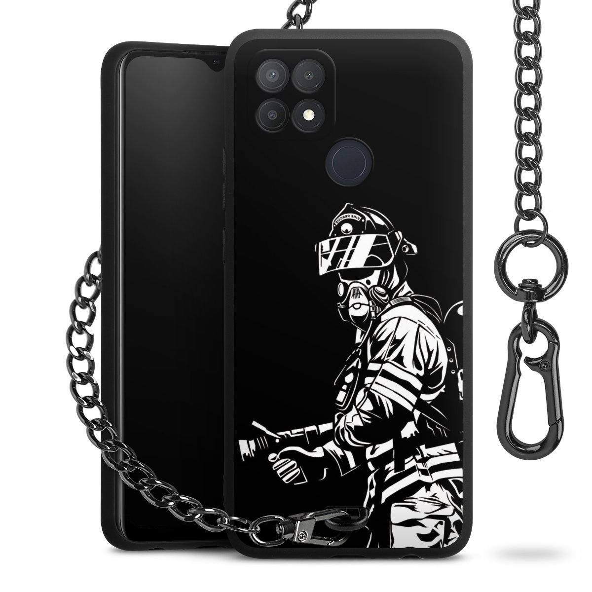 Die mattschwarze Silikon-Handyhülle besteht aus robustem TPU (thermoplastisches Polyurethan). Sie ist flexibel und schützt Dein Smartphone vor Stößen und Kratzern. Die Kette sowie der Karabinerhaken sind aus Metall in Gunmetal-Optik gefertigt. Für dieses Produkt kommen ausschließlich TÜV-geprüfte Materialien zum Einsatz.