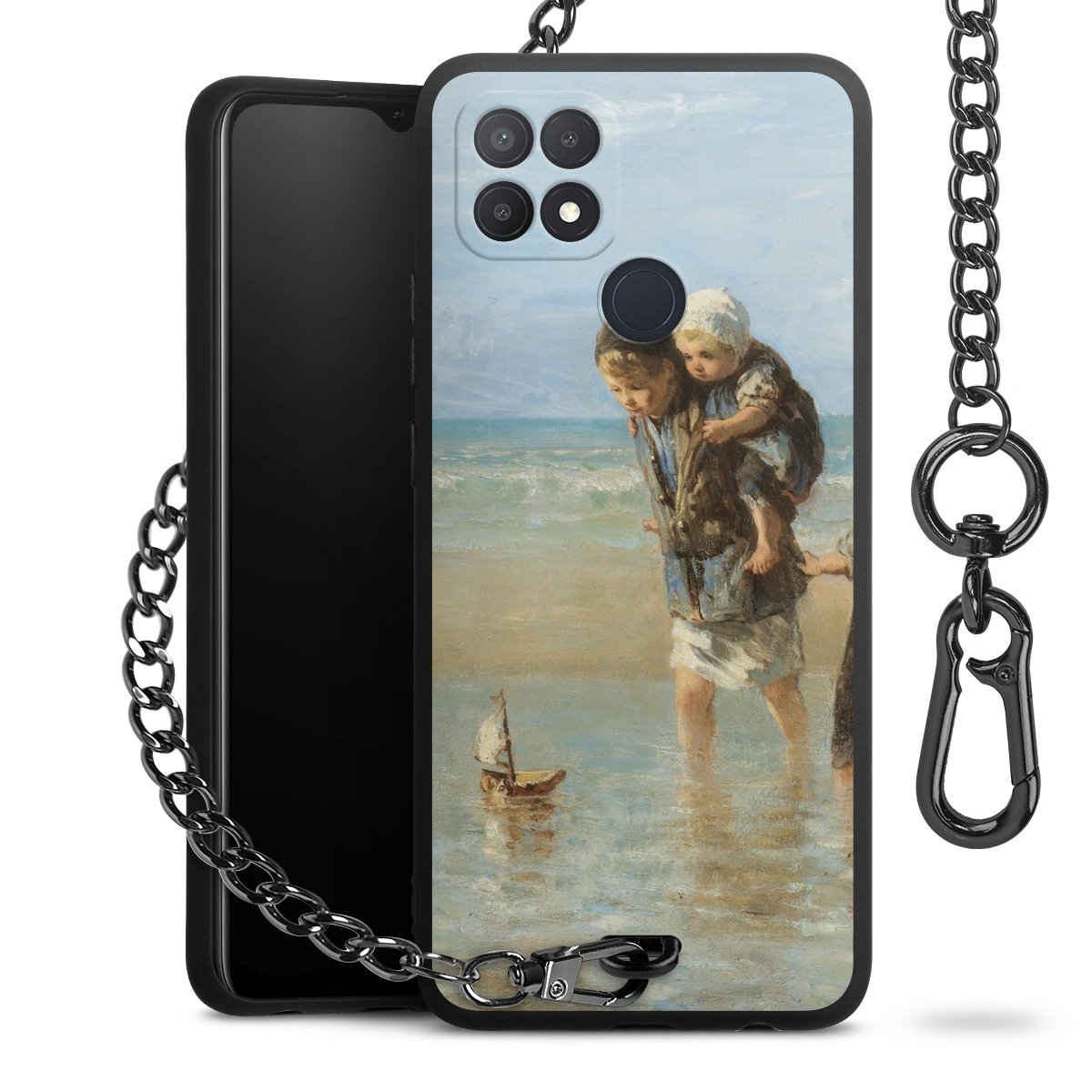 - Mattschwarze Handyhülle mit Metallkette