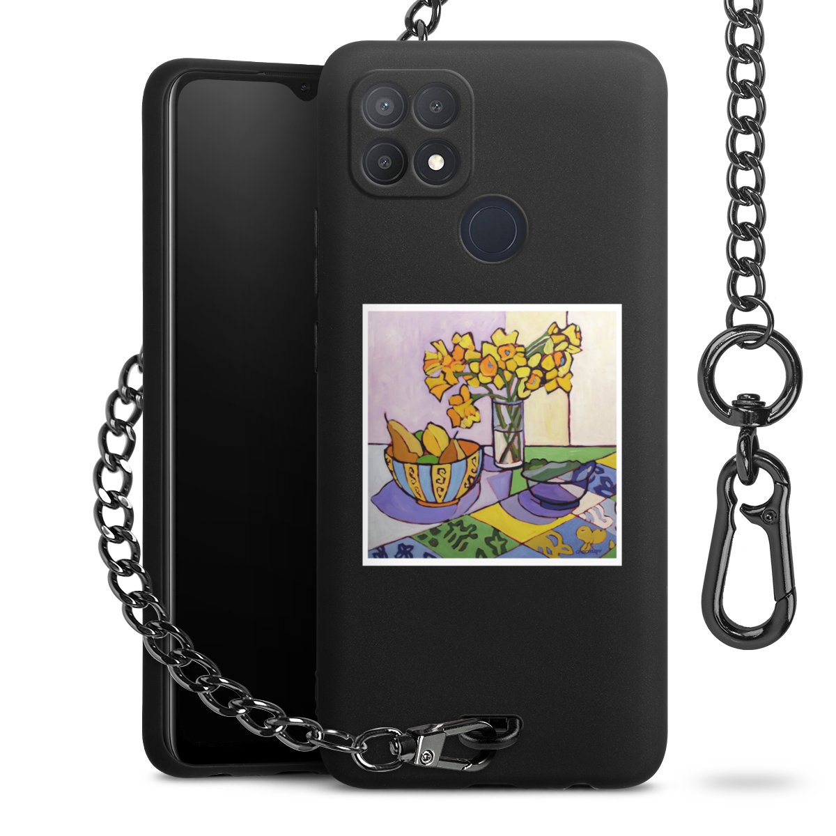 - Mattschwarze Handyhülle mit Metallkette