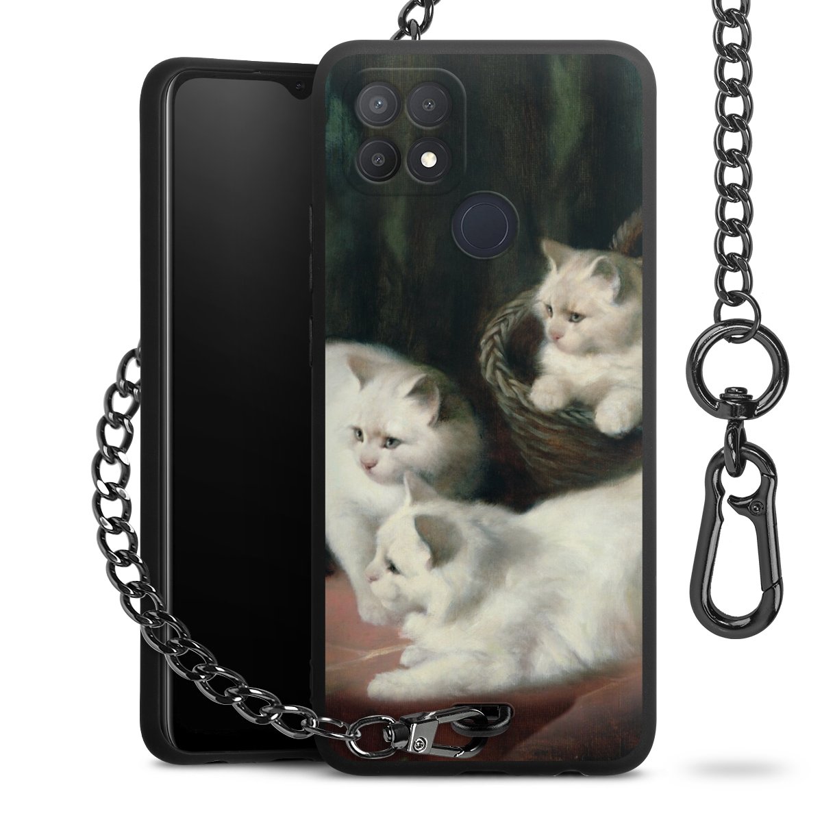 • Mattschwarze Handyhülle mit Metallkette