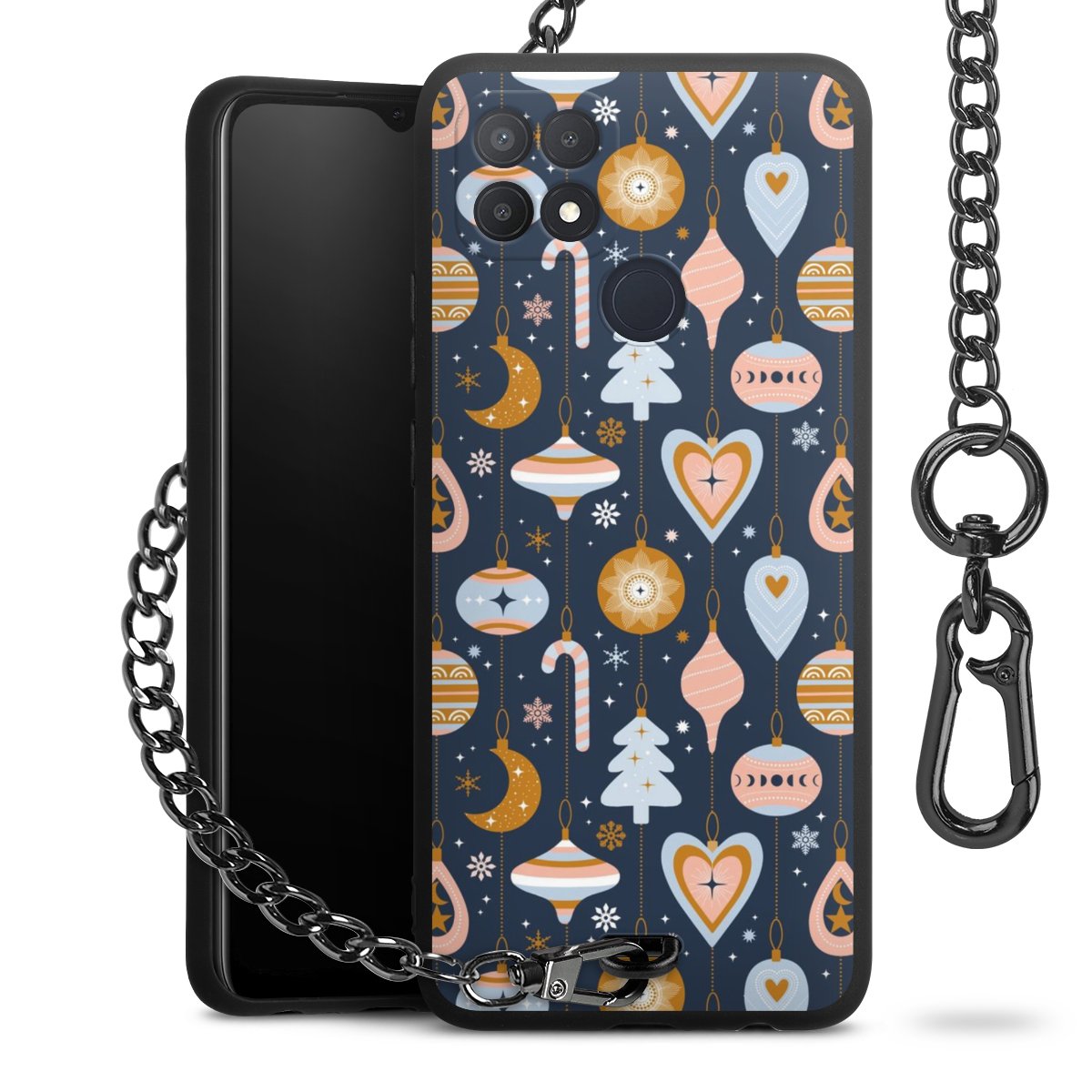 • Mattschwarze Handyhülle mit Metallkette