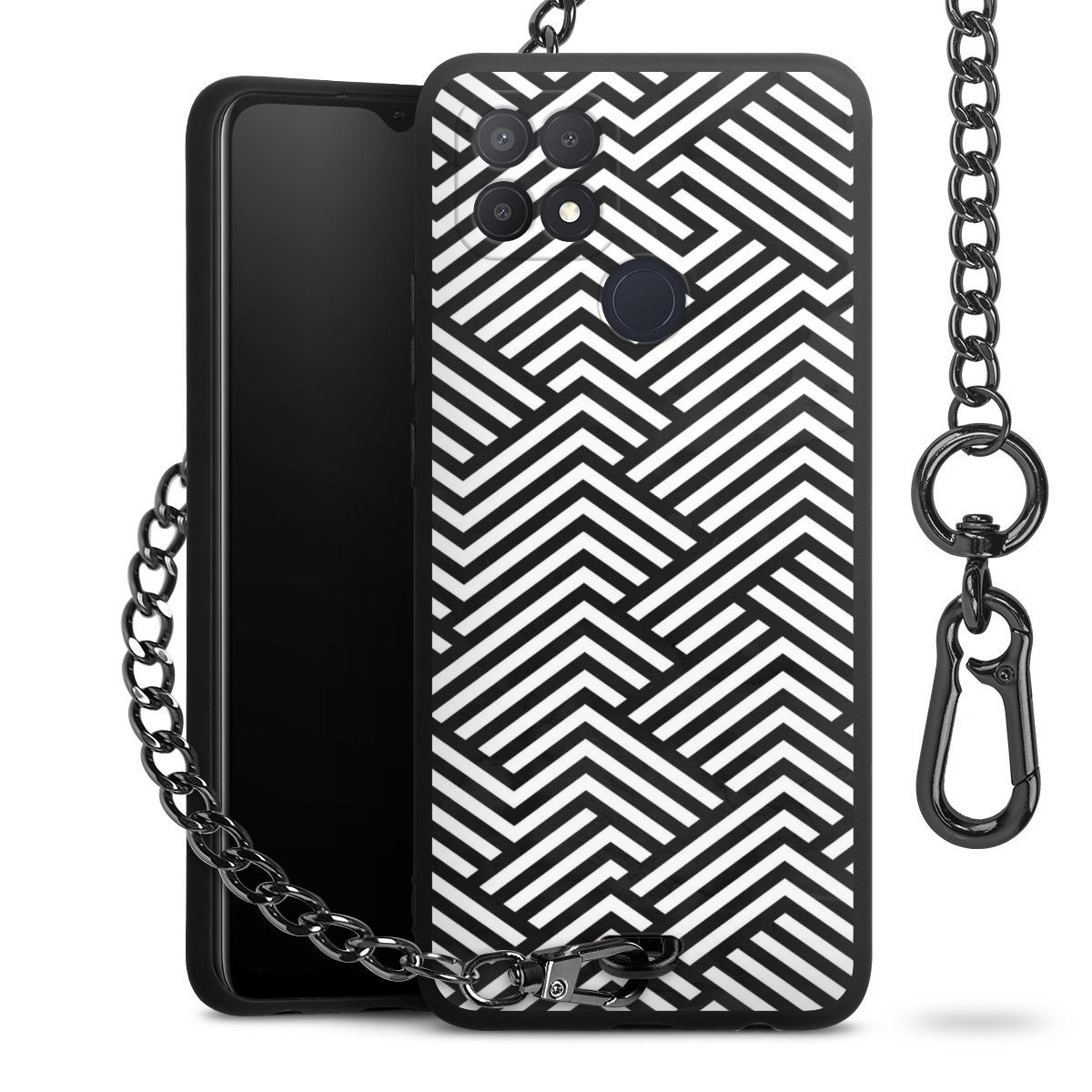 • Mattschwarze Handyhülle mit Metallkette