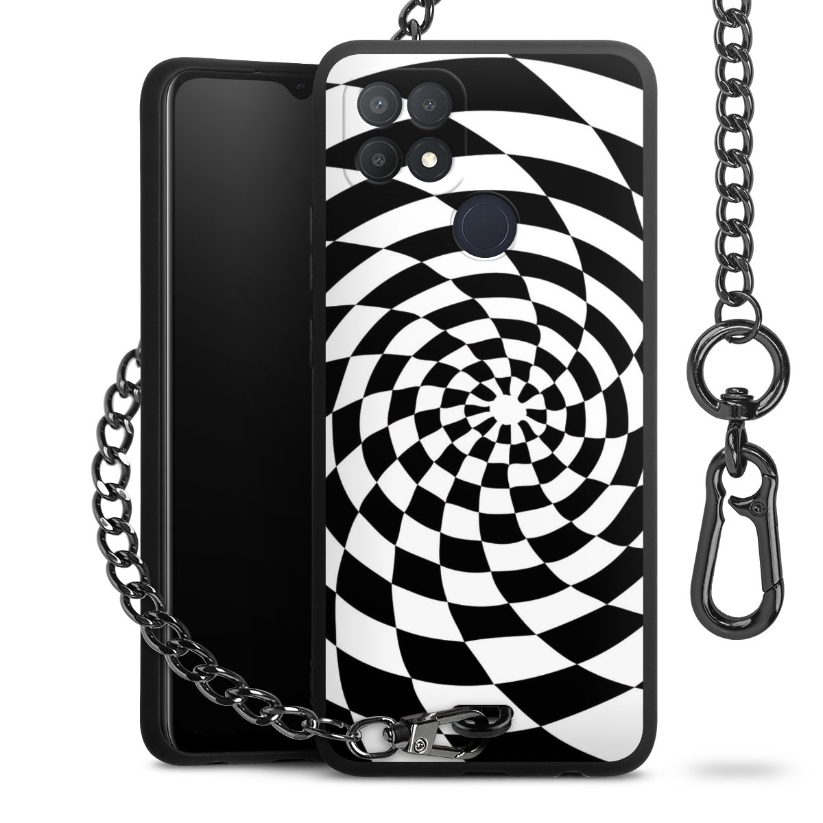• Mattschwarze Handyhülle mit Metallkette