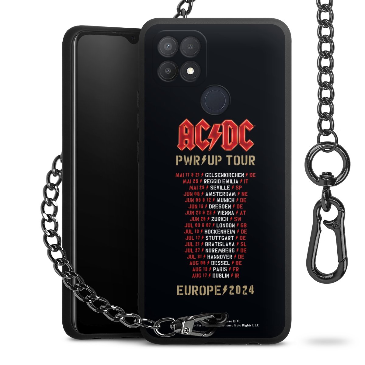 Die mattschwarze Silikon-Handyhülle besteht aus robustem TPU (thermoplastisches Polyurethan). Sie ist flexibel und schützt Dein Smartphone vor Stößen und Kratzern. Die Kette sowie der Karabinerhaken sind aus Metall in Gunmetal-Optik gefertigt. Für dieses Produkt kommen ausschließlich TÜV-geprüfte Materialien zum Einsatz.