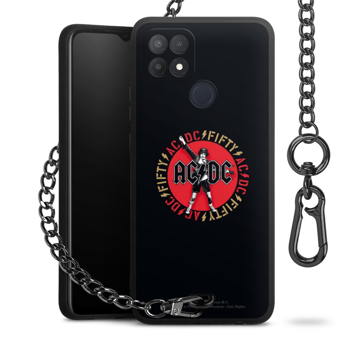 Die mattschwarze Silikon-Handyhülle besteht aus robustem TPU (thermoplastisches Polyurethan). Sie ist flexibel und schützt Dein Smartphone vor Stößen und Kratzern. Die Kette sowie der Karabinerhaken sind aus Metall in Gunmetal-Optik gefertigt. Für dieses Produkt kommen ausschließlich TÜV-geprüfte Materialien zum Einsatz.