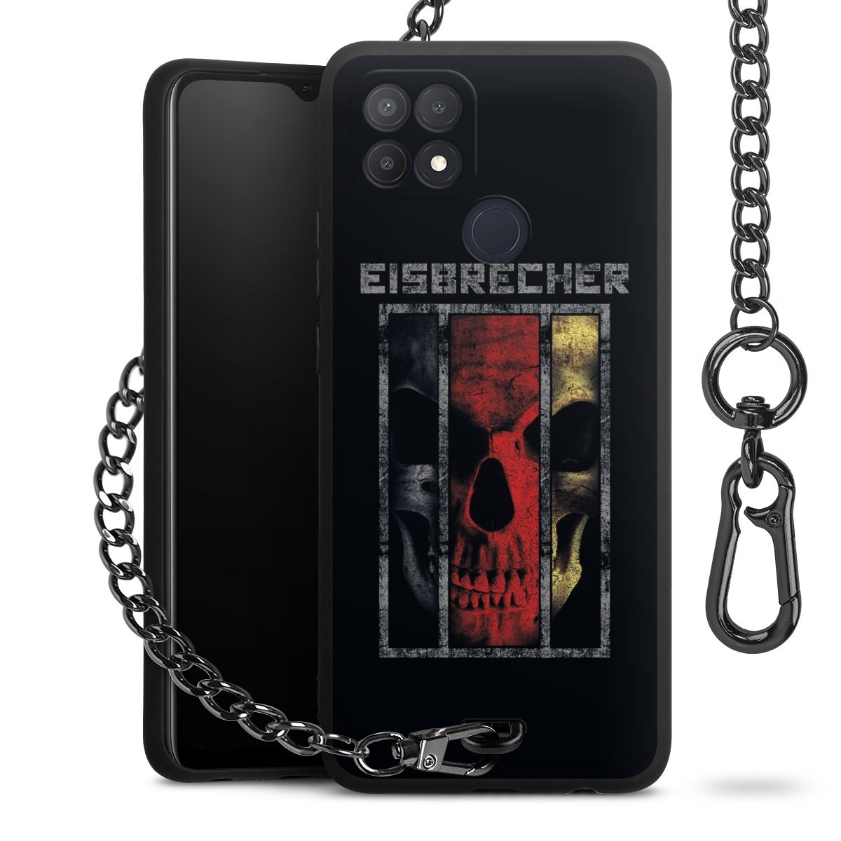 Die mattschwarze Silikon-Handyhülle besteht aus robustem TPU (thermoplastisches Polyurethan). Sie ist flexibel und schützt Dein Smartphone vor Stößen und Kratzern. Die Kette sowie der Karabinerhaken sind aus Metall in Gunmetal-Optik gefertigt. Für dieses Produkt kommen ausschließlich TÜV-geprüfte Materialien zum Einsatz.