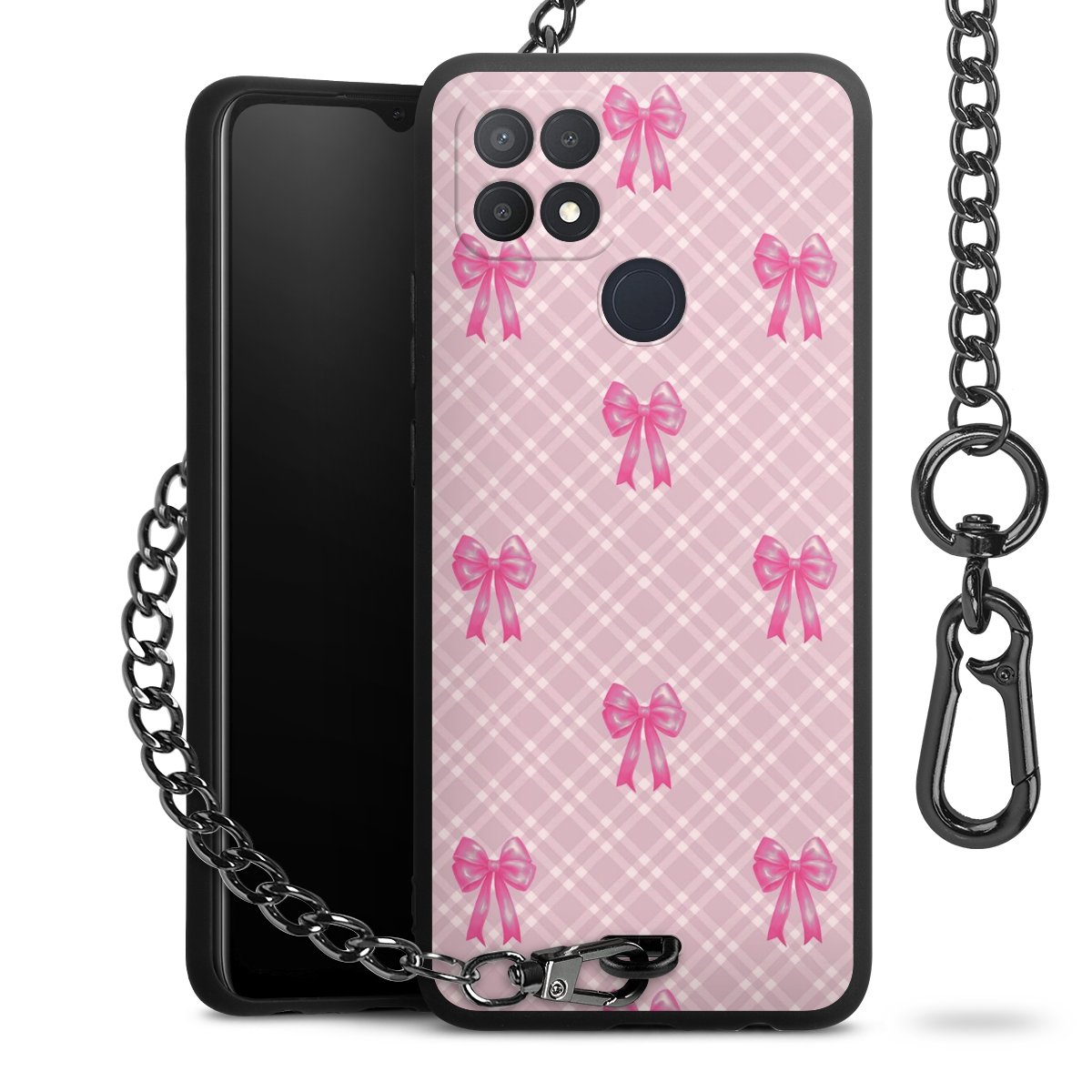 • Mattschwarze Handyhülle mit Metallkette