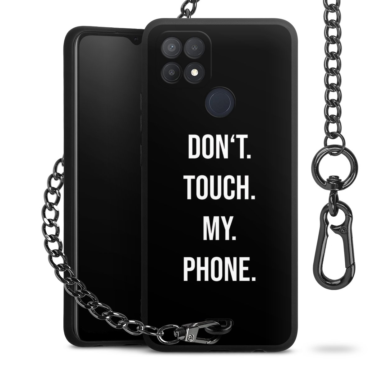 - Mattschwarze Handyhülle mit Metallkette