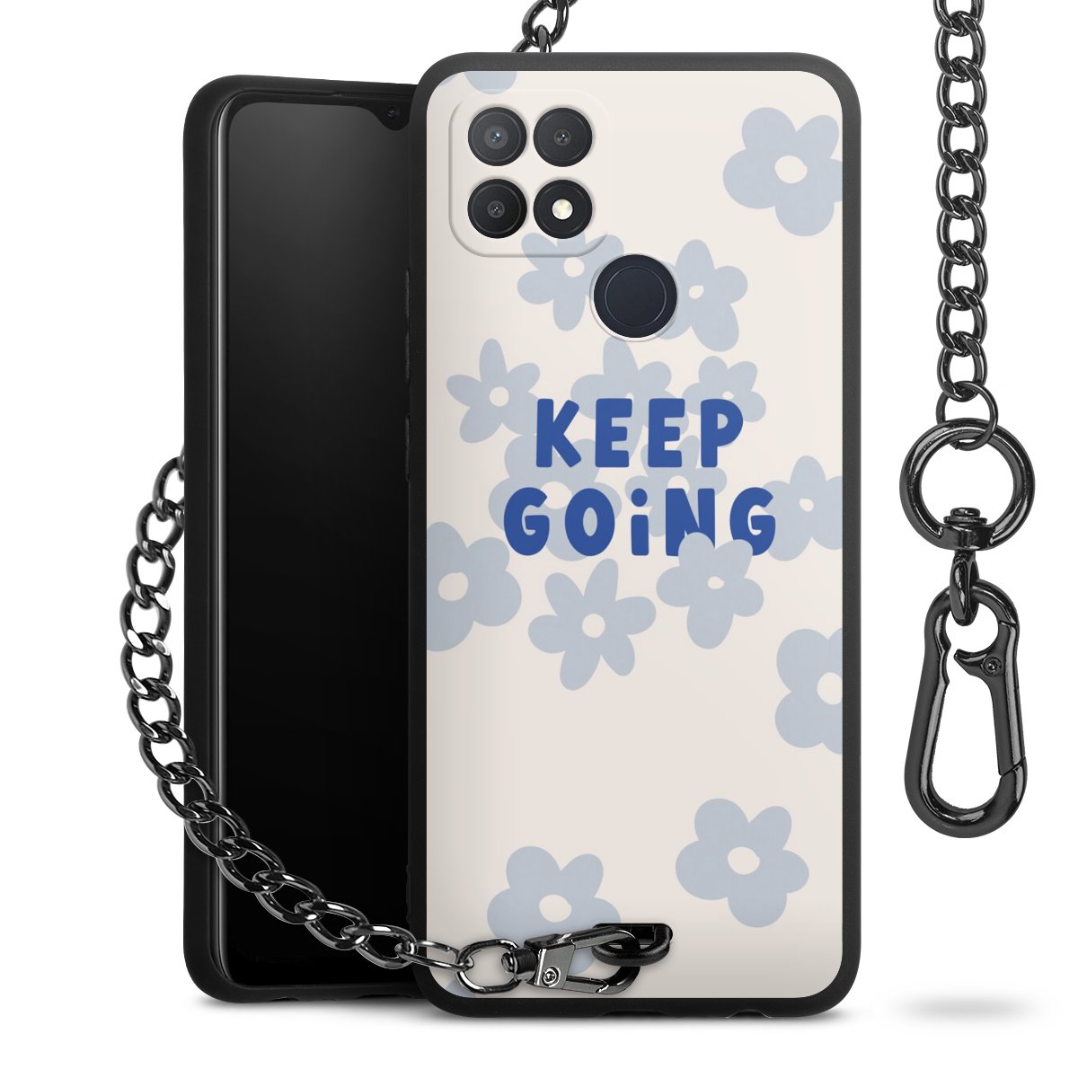 Die mattschwarze Silikon-Handyhülle besteht aus robustem TPU (thermoplastisches Polyurethan). Sie ist flexibel und schützt Dein Smartphone vor Stößen und Kratzern. Die Kette sowie der Karabinerhaken sind aus Metall in Gunmetal-Optik gefertigt. Für dieses Produkt kommen ausschließlich TÜV-geprüfte Materialien zum Einsatz.