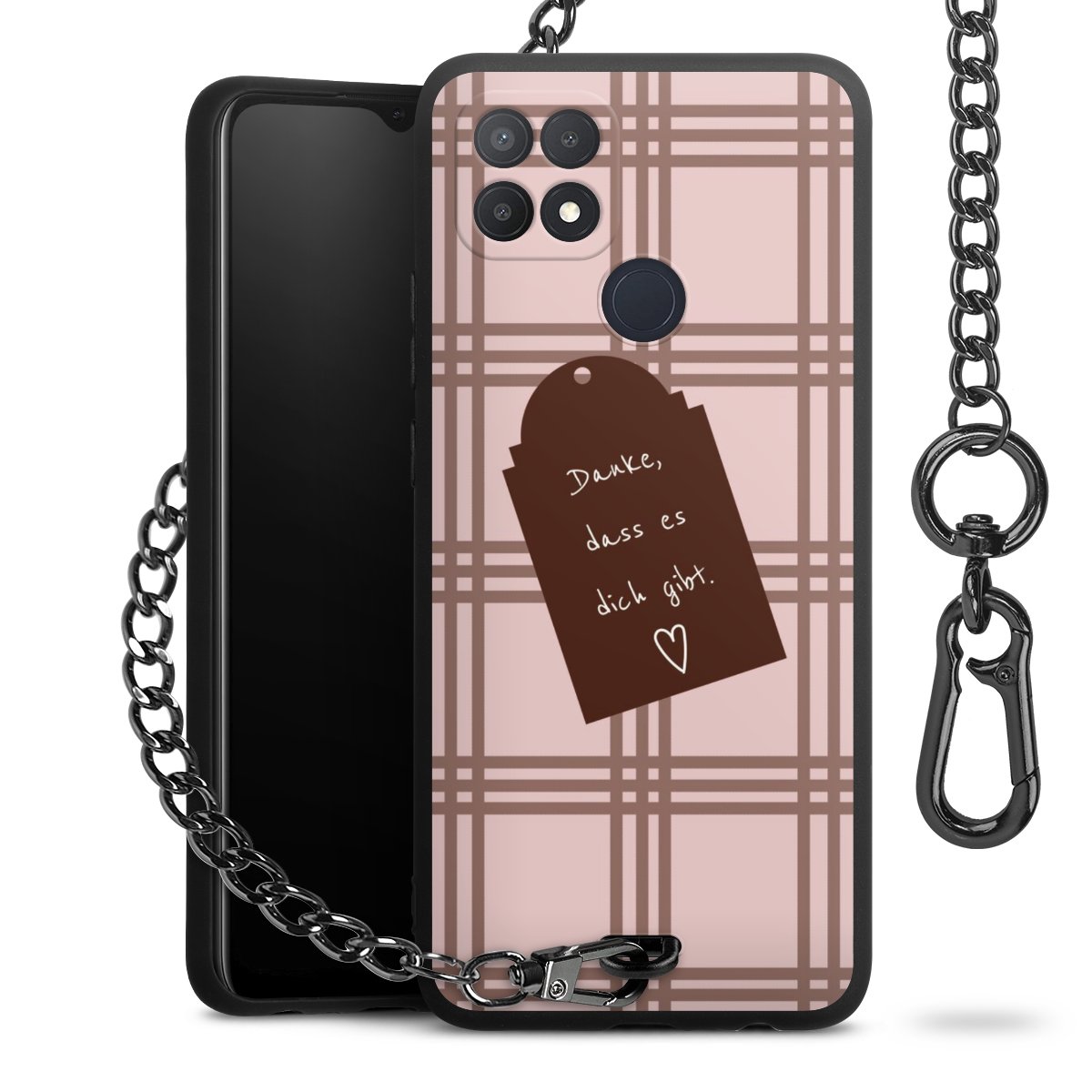 • Mattschwarze Handyhülle mit Metallkette