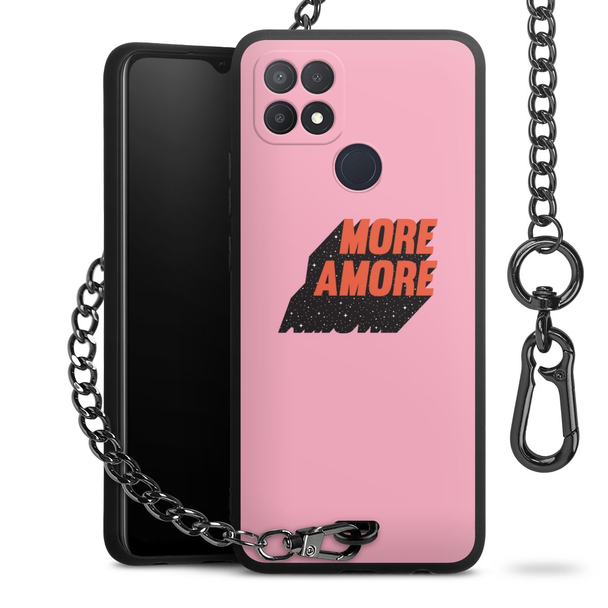 • Mattschwarze Handyhülle mit Metallkette