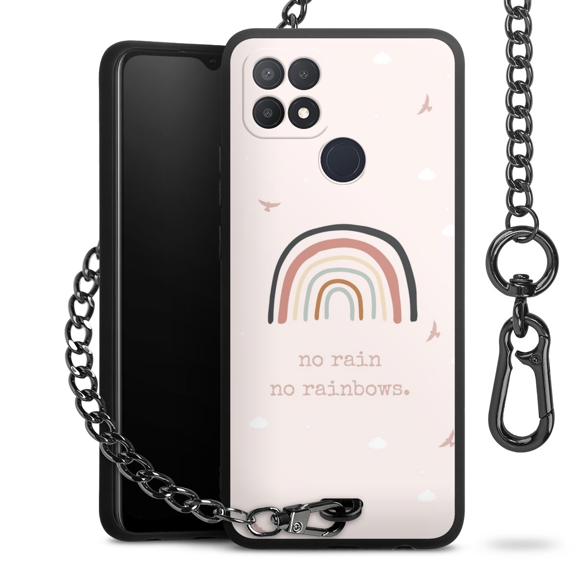 - Mattschwarze Handyhülle mit Metallkette
