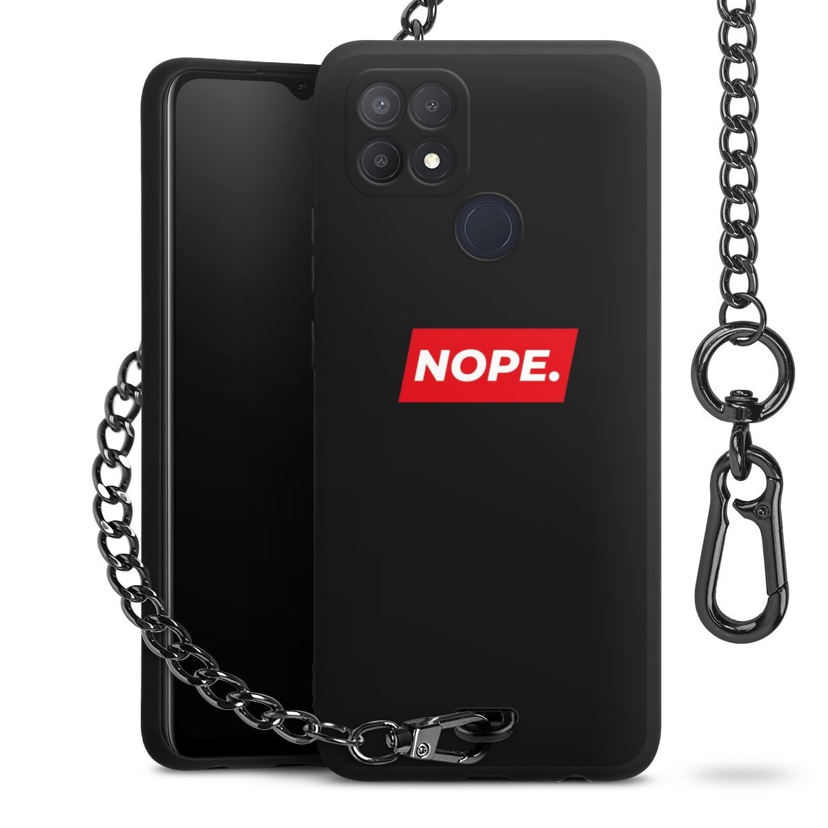 Die mattschwarze Silikon-Handyhülle besteht aus robustem TPU (thermoplastisches Polyurethan). Sie ist flexibel und schützt Dein Smartphone vor Stößen und Kratzern. Die Kette sowie der Karabinerhaken sind aus Metall in Gunmetal-Optik gefertigt. Für dieses Produkt kommen ausschließlich TÜV-geprüfte Materialien zum Einsatz.