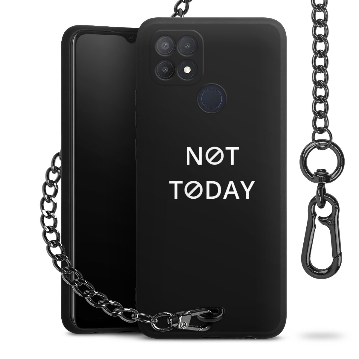- Mattschwarze Handyhülle mit Metallkette