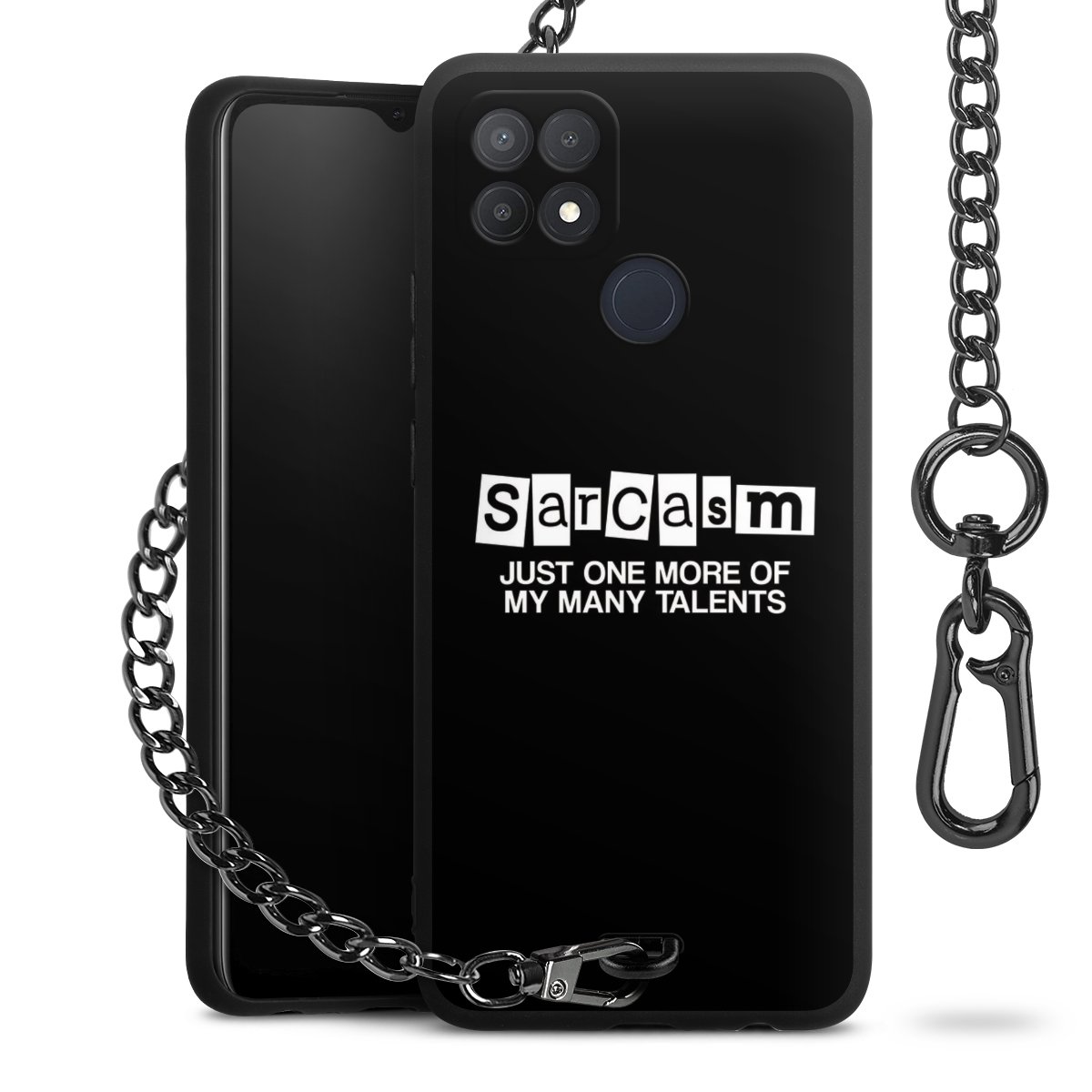 • Mattschwarze Handyhülle mit Metallkette