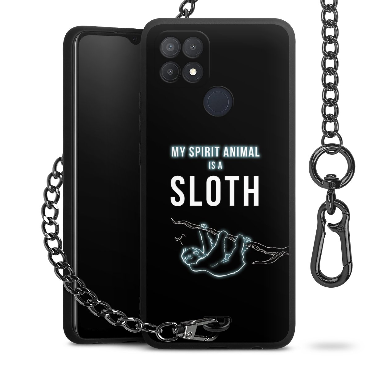 Die mattschwarze Silikon-Handyhülle besteht aus robustem TPU (thermoplastisches Polyurethan). Sie ist flexibel und schützt Dein Smartphone vor Stößen und Kratzern. Die Kette sowie der Karabinerhaken sind aus Metall in Gunmetal-Optik gefertigt. Für dieses Produkt kommen ausschließlich TÜV-geprüfte Materialien zum Einsatz.
