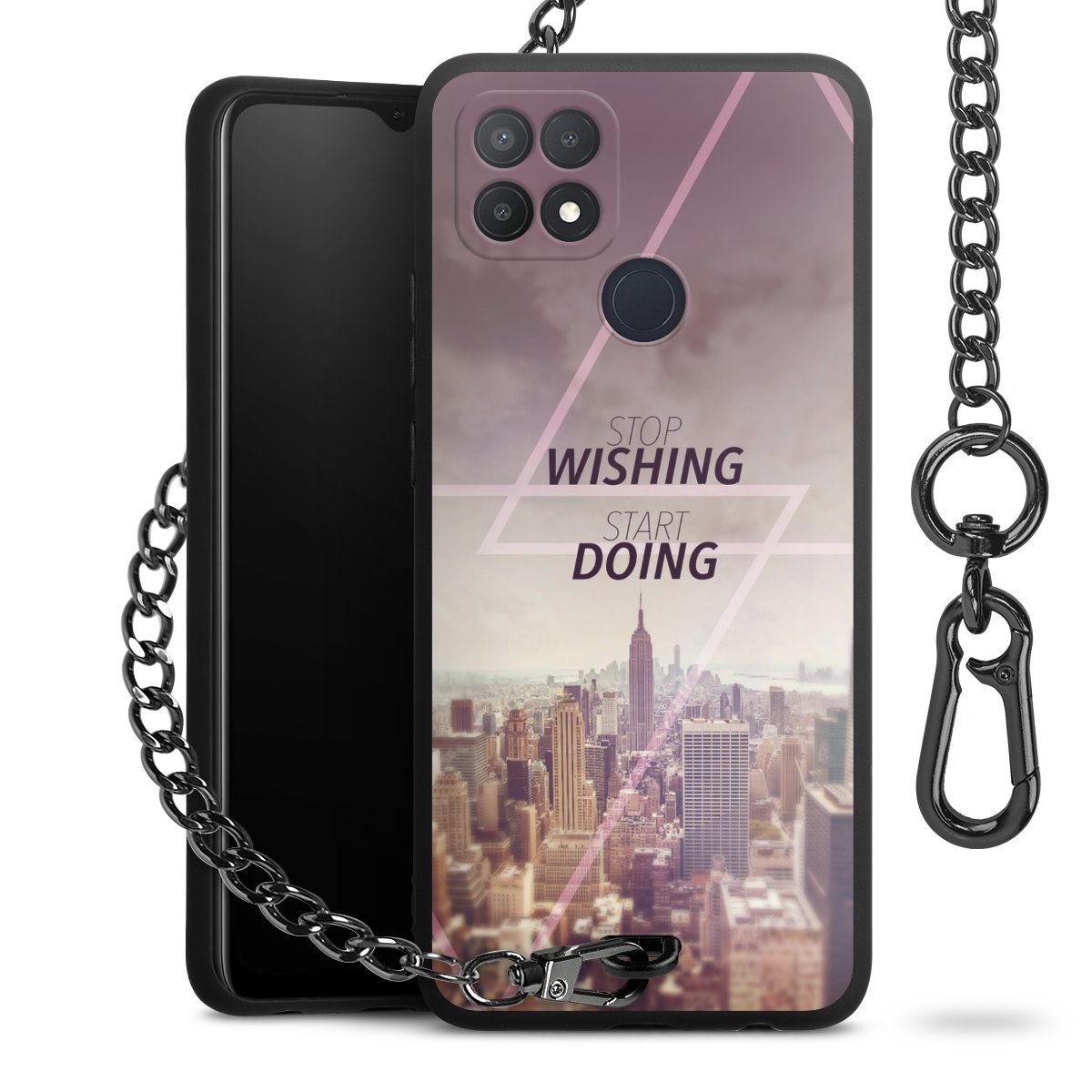 - Mattschwarze Handyhülle mit Metallkette