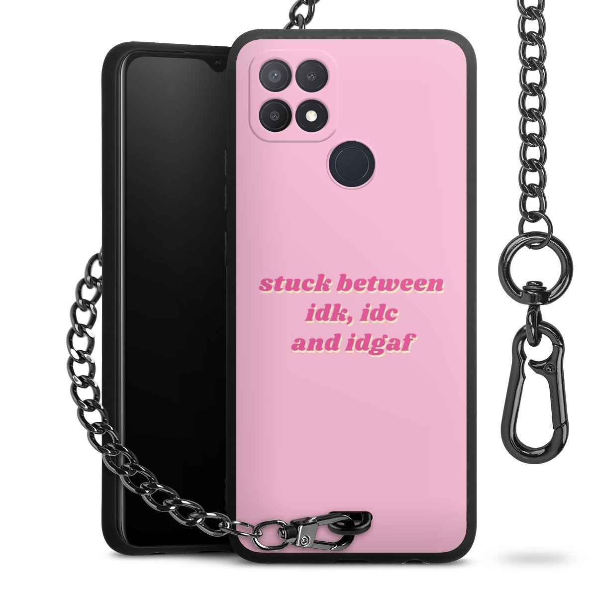 - Mattschwarze Handyhülle mit Metallkette