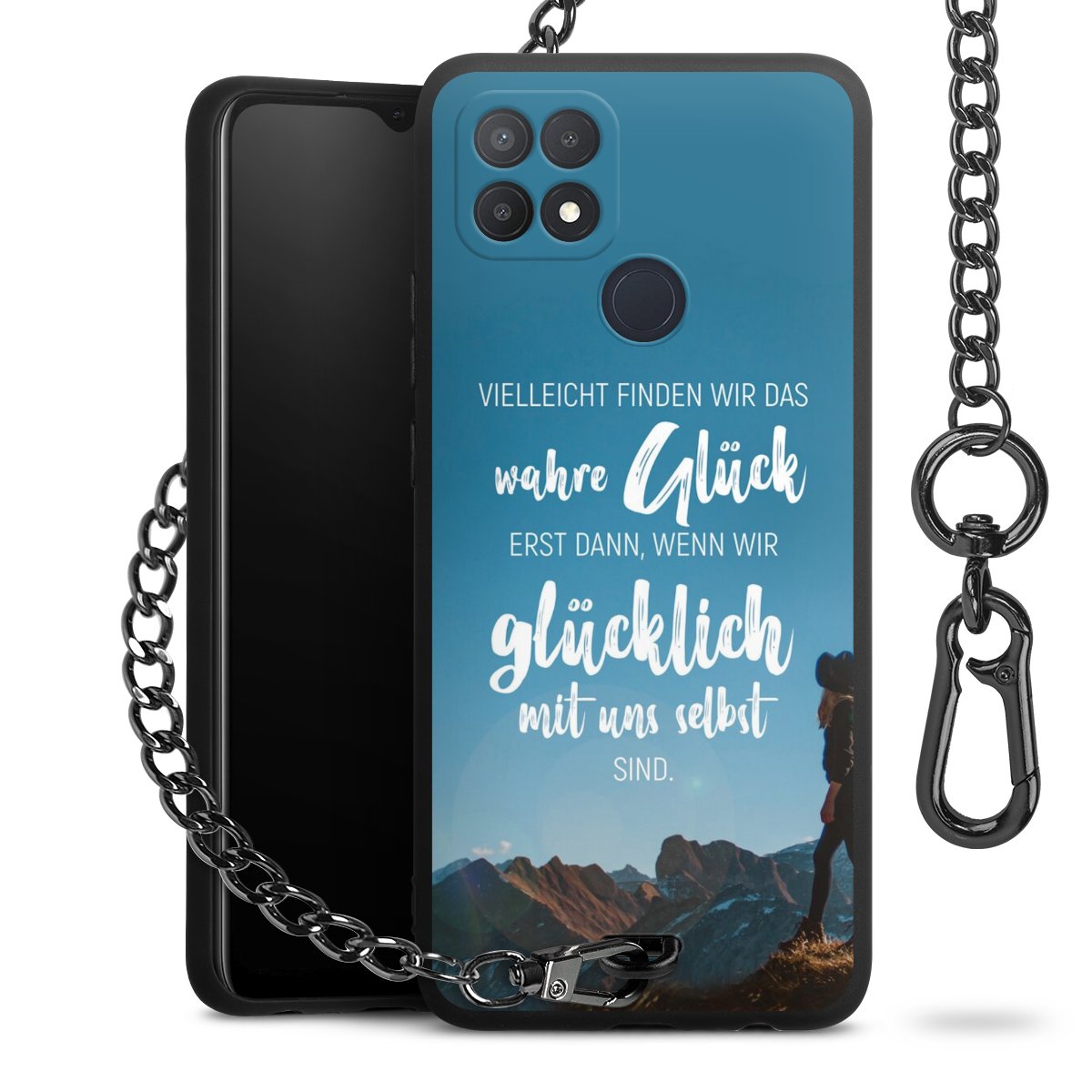 Die mattschwarze Silikon-Handyhülle besteht aus robustem TPU (thermoplastisches Polyurethan). Sie ist flexibel und schützt Dein Smartphone vor Stößen und Kratzern. Die Kette sowie der Karabinerhaken sind aus Metall in Gunmetal-Optik gefertigt. Für dieses Produkt kommen ausschließlich TÜV-geprüfte Materialien zum Einsatz.