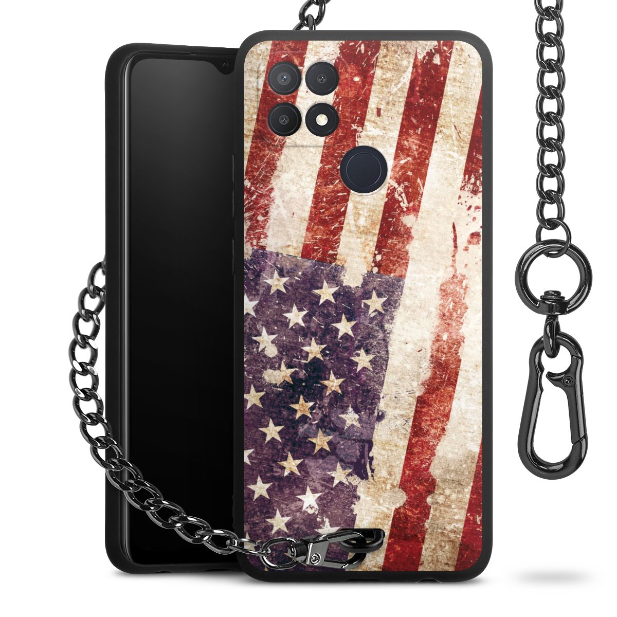 Die mattschwarze Silikon-Handyhülle besteht aus robustem TPU (thermoplastisches Polyurethan). Sie ist flexibel und schützt Dein Smartphone vor Stößen und Kratzern. Die Kette sowie der Karabinerhaken sind aus Metall in Gunmetal-Optik gefertigt. Für dieses Produkt kommen ausschließlich TÜV-geprüfte Materialien zum Einsatz.