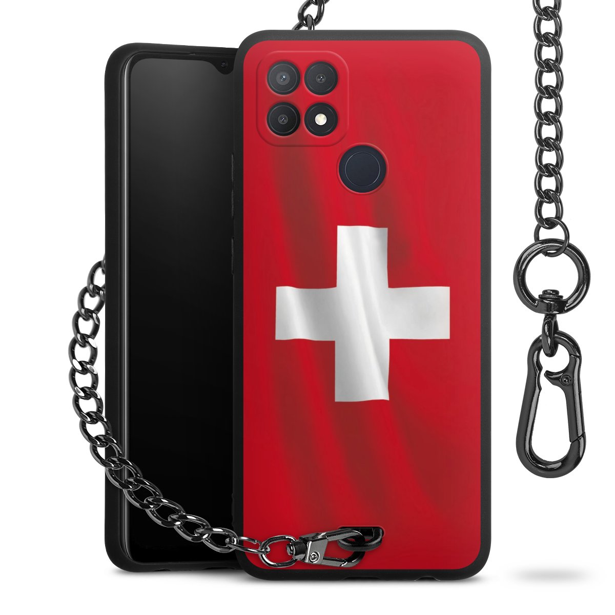 Die mattschwarze Silikon-Handyhülle besteht aus robustem TPU (thermoplastisches Polyurethan). Sie ist flexibel und schützt Dein Smartphone vor Stößen und Kratzern. Die Kette sowie der Karabinerhaken sind aus Metall in Gunmetal-Optik gefertigt. Für dieses Produkt kommen ausschließlich TÜV-geprüfte Materialien zum Einsatz.