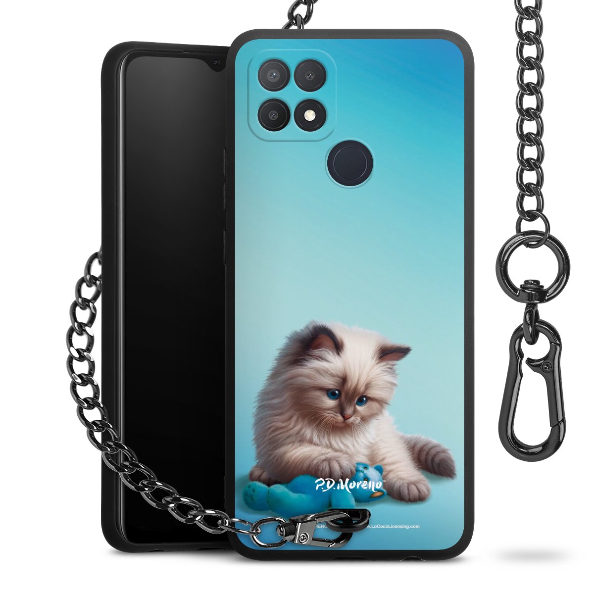 Die mattschwarze Silikon-Handyhülle besteht aus robustem TPU (thermoplastisches Polyurethan). Sie ist flexibel und schützt Dein Smartphone vor Stößen und Kratzern. Die Kette sowie der Karabinerhaken sind aus Metall in Gunmetal-Optik gefertigt. Für dieses Produkt kommen ausschließlich TÜV-geprüfte Materialien zum Einsatz.