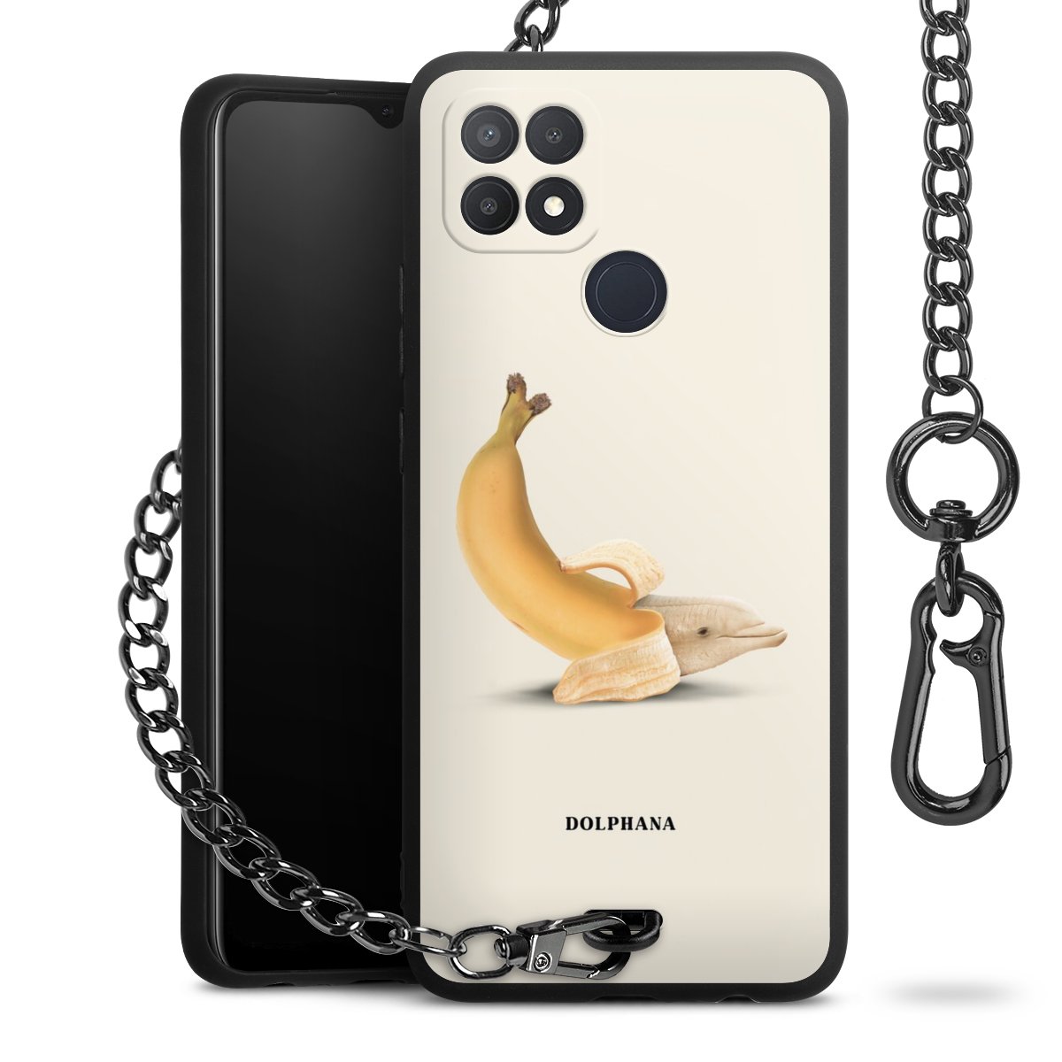 • Mattschwarze Handyhülle mit Metallkette