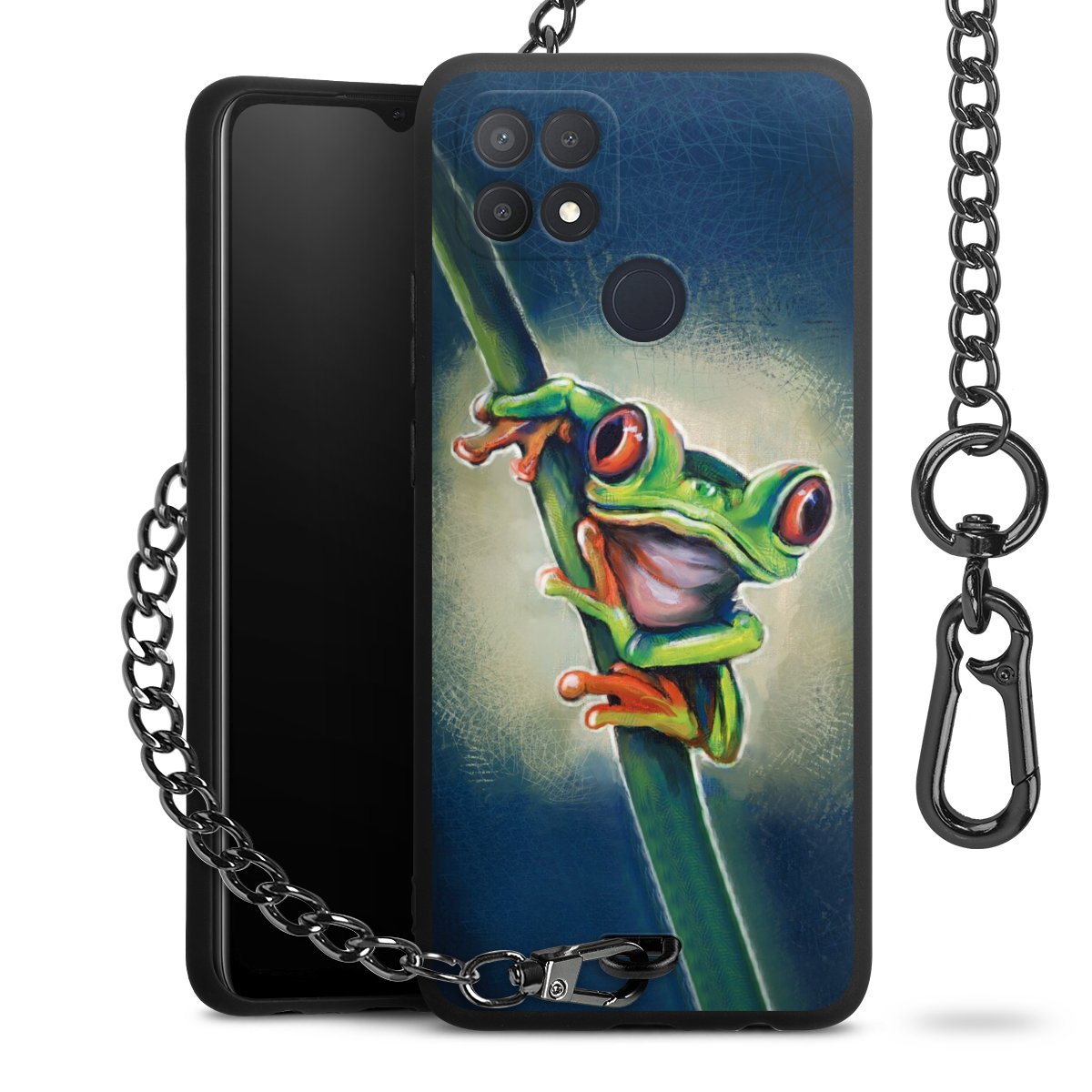• Mattschwarze Handyhülle mit Metallkette